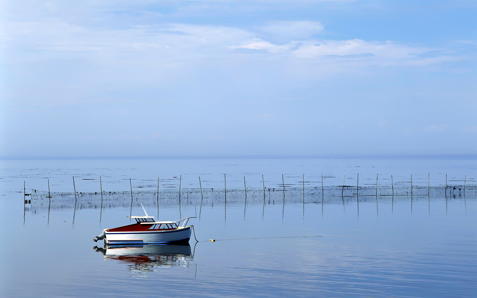 Обои Белая лодка в море