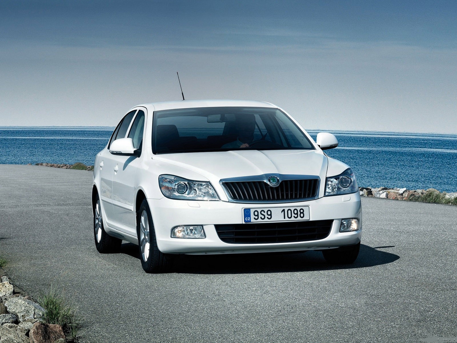 Похожие обои на Белая Шкода Октавия на берегу моря: