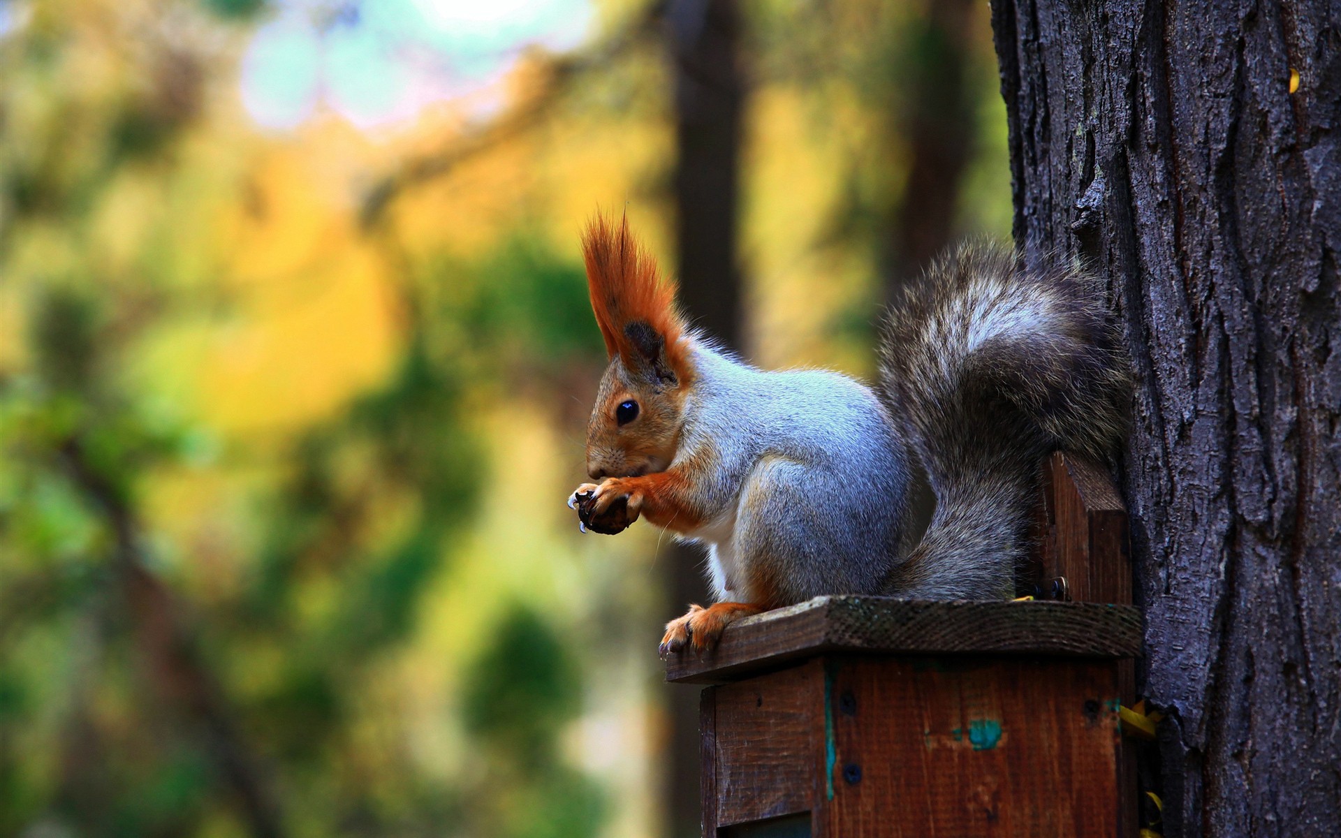 Скачать обои для рабочего стола Белочка на скворешне и фото