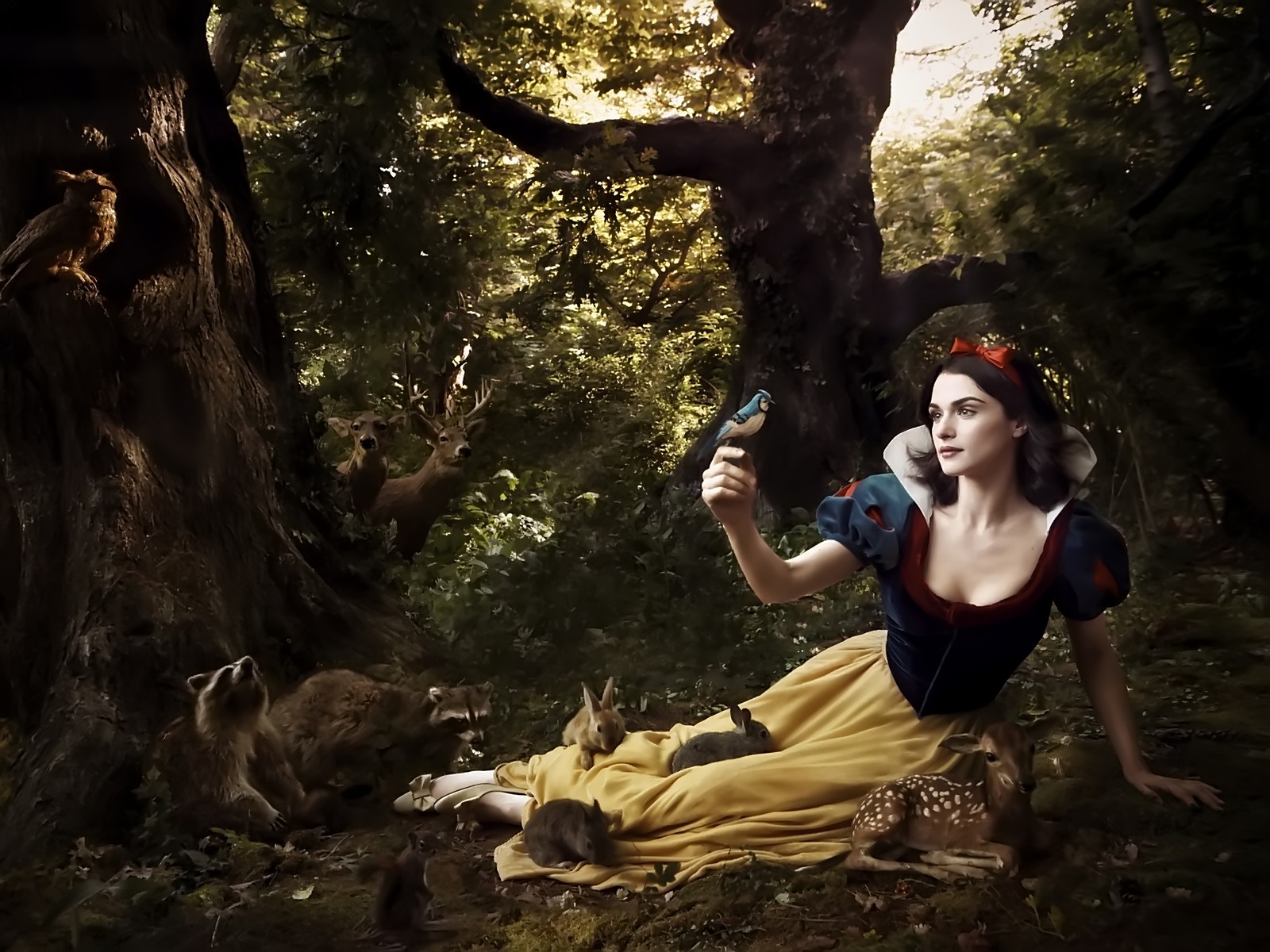 Скачать обои для рабочего стола Белоснежка со зверями и фото