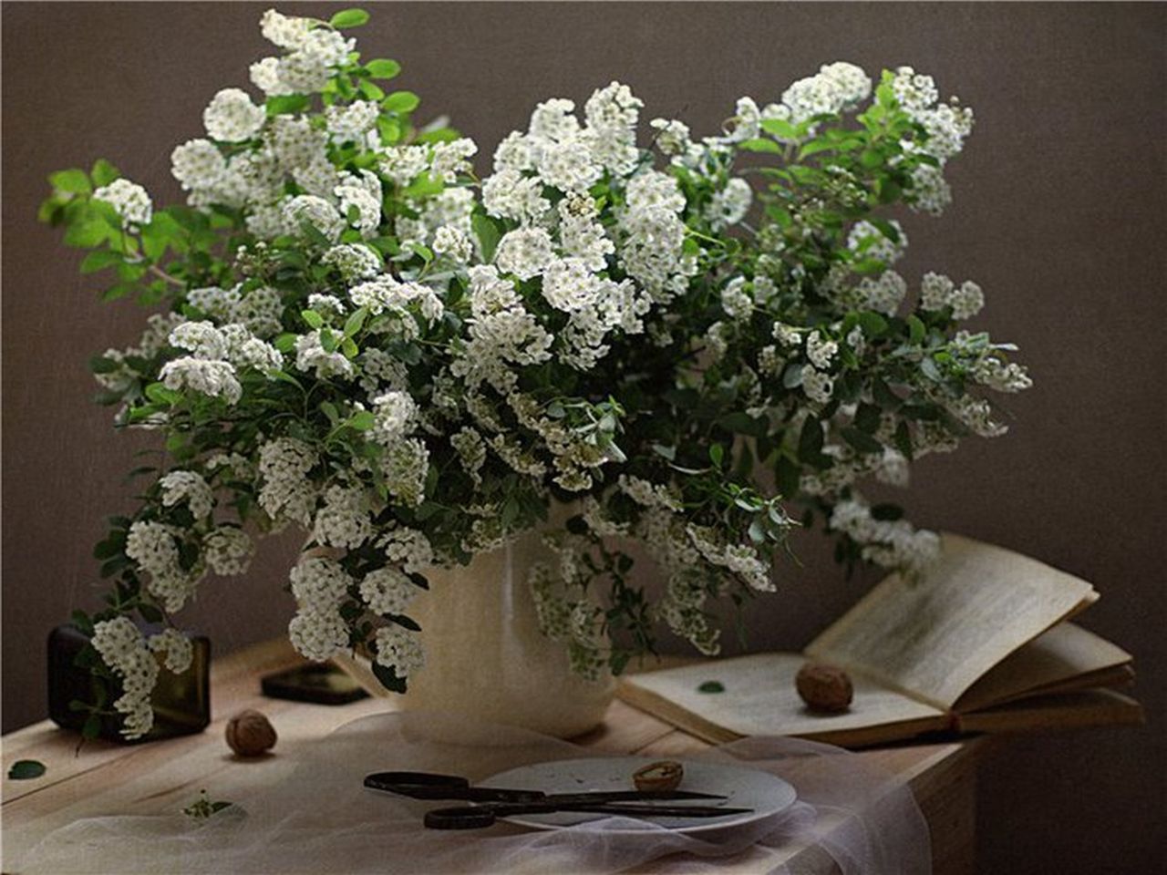 Скачать обои для рабочего стола Белые цветы и книга и фото