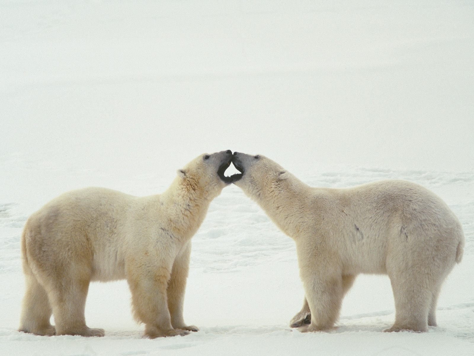Скачать обои для рабочего стола Белые медведи готовятся к схватке и фото