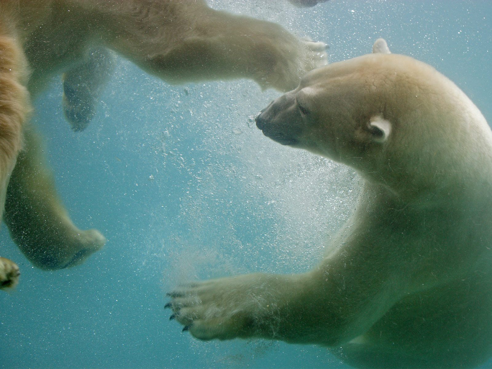 Скачать обои для рабочего стола Белые медведи купаются и фото