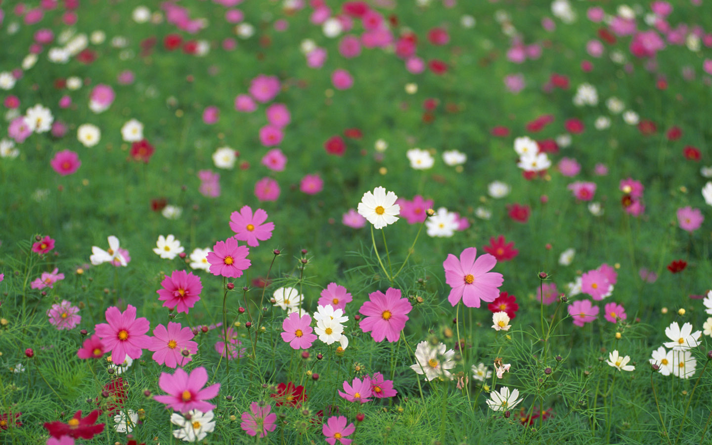 Скачать обои для рабочего стола Белые, розовые цветочки в зеленой траве и фото