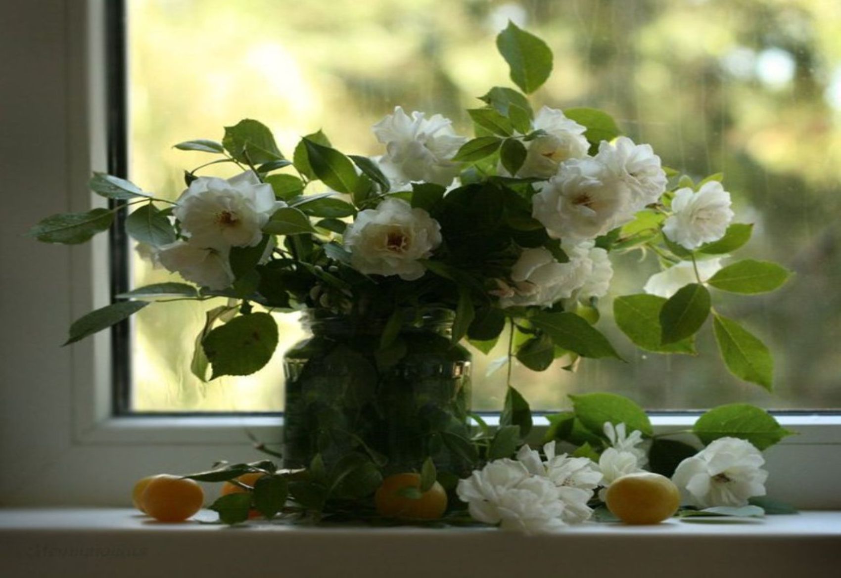 Скачать обои для рабочего стола Белые Розы на окне и фото