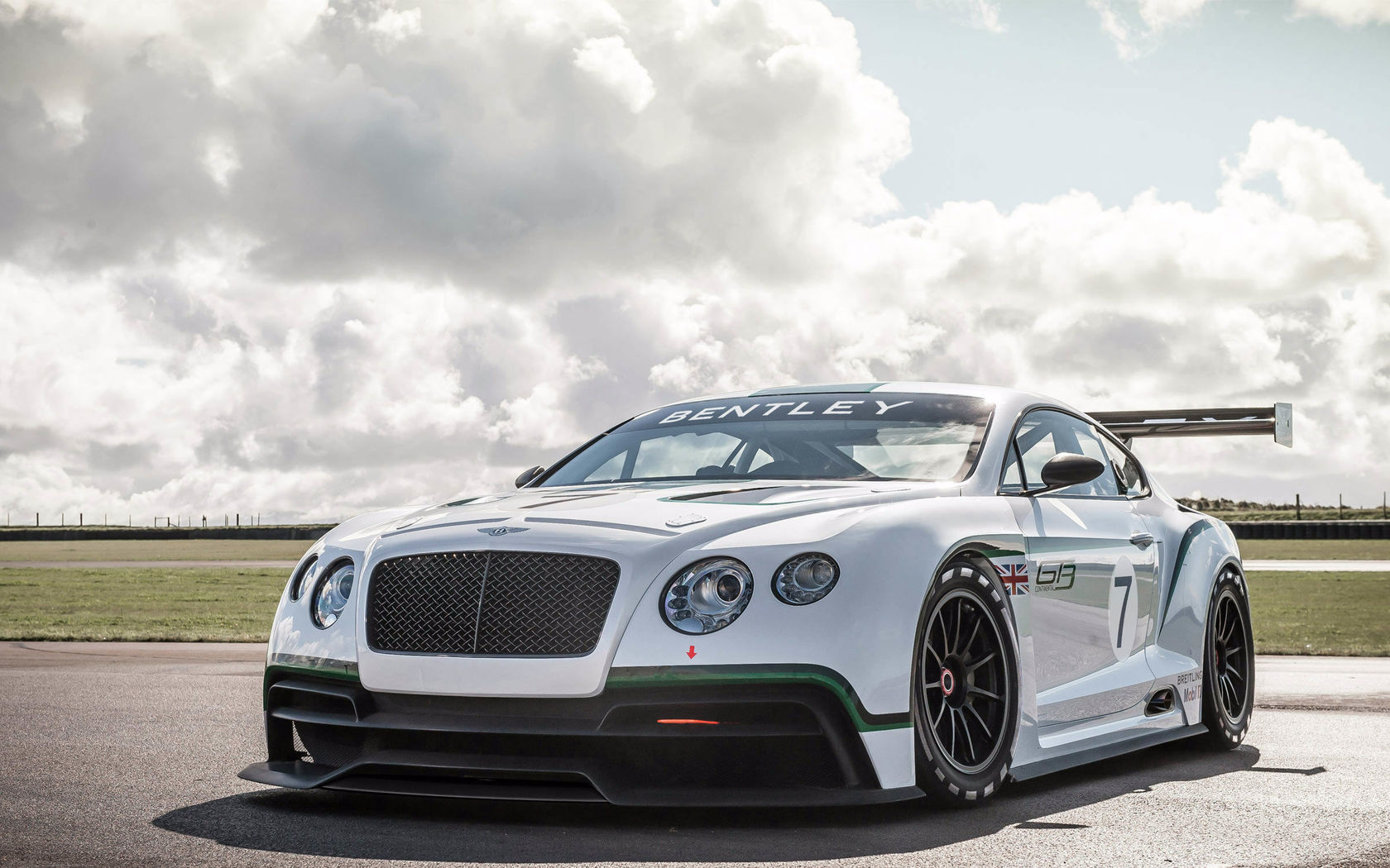 Скачать обои для рабочего стола Белый Бентли на гоночной трассе и фото