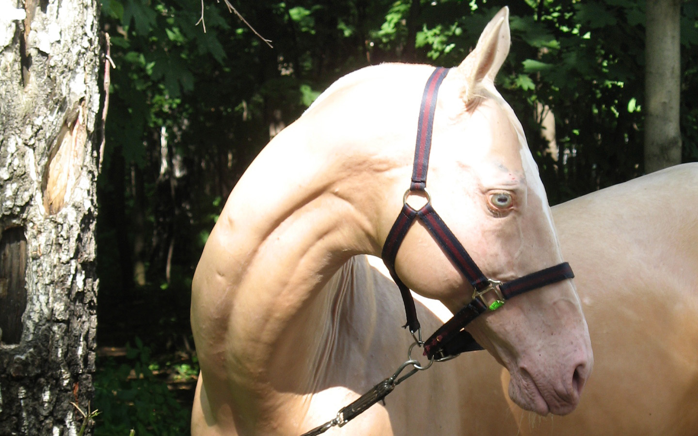 Скачать обои для рабочего стола Белый конь у дерева и фото