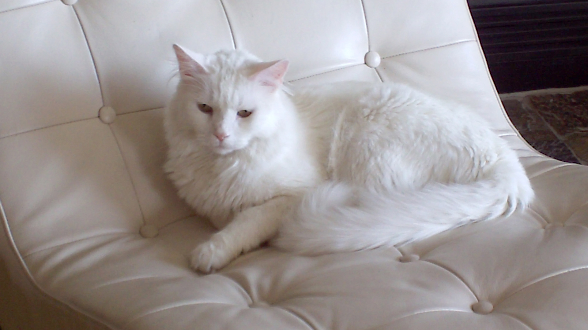 Скачать обои для рабочего стола Белый кот на белом матрасе и фото