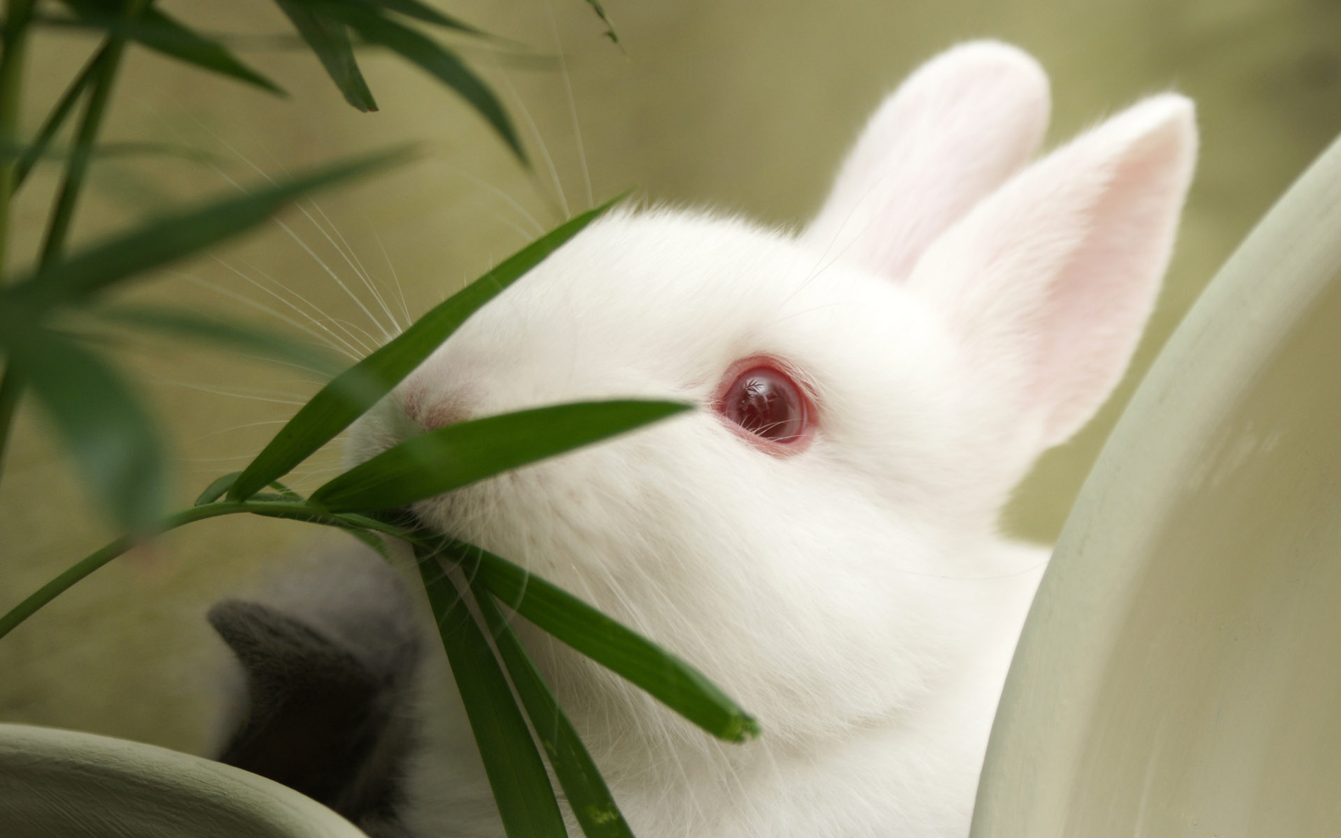 Скачать обои для рабочего стола Белый кролик и растение и фото