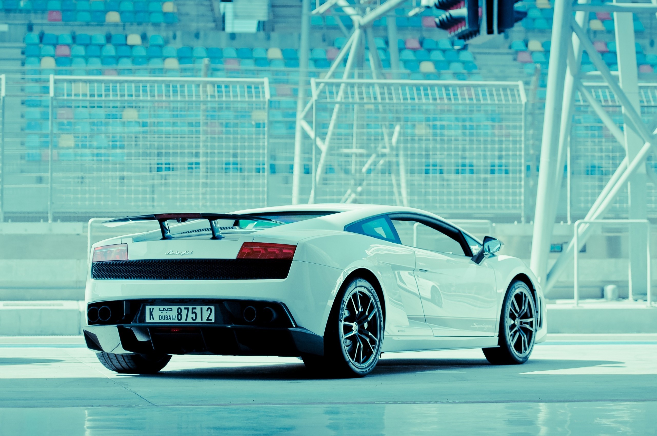 Обои Белый Ламборджини с бирюзовым оттенком