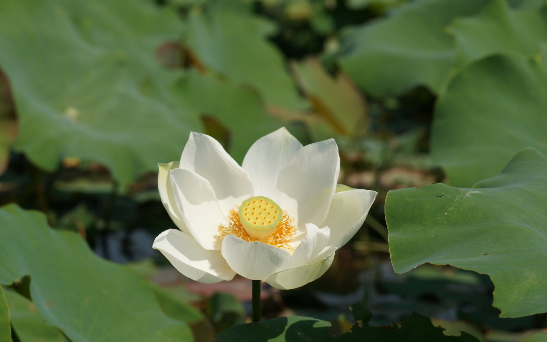 Скачать обои для рабочего стола Белый лотос с желтой срединкой и фото