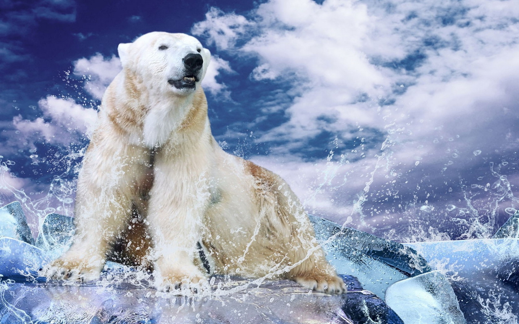 Скачать обои для рабочего стола Белый медведь на льду и фото