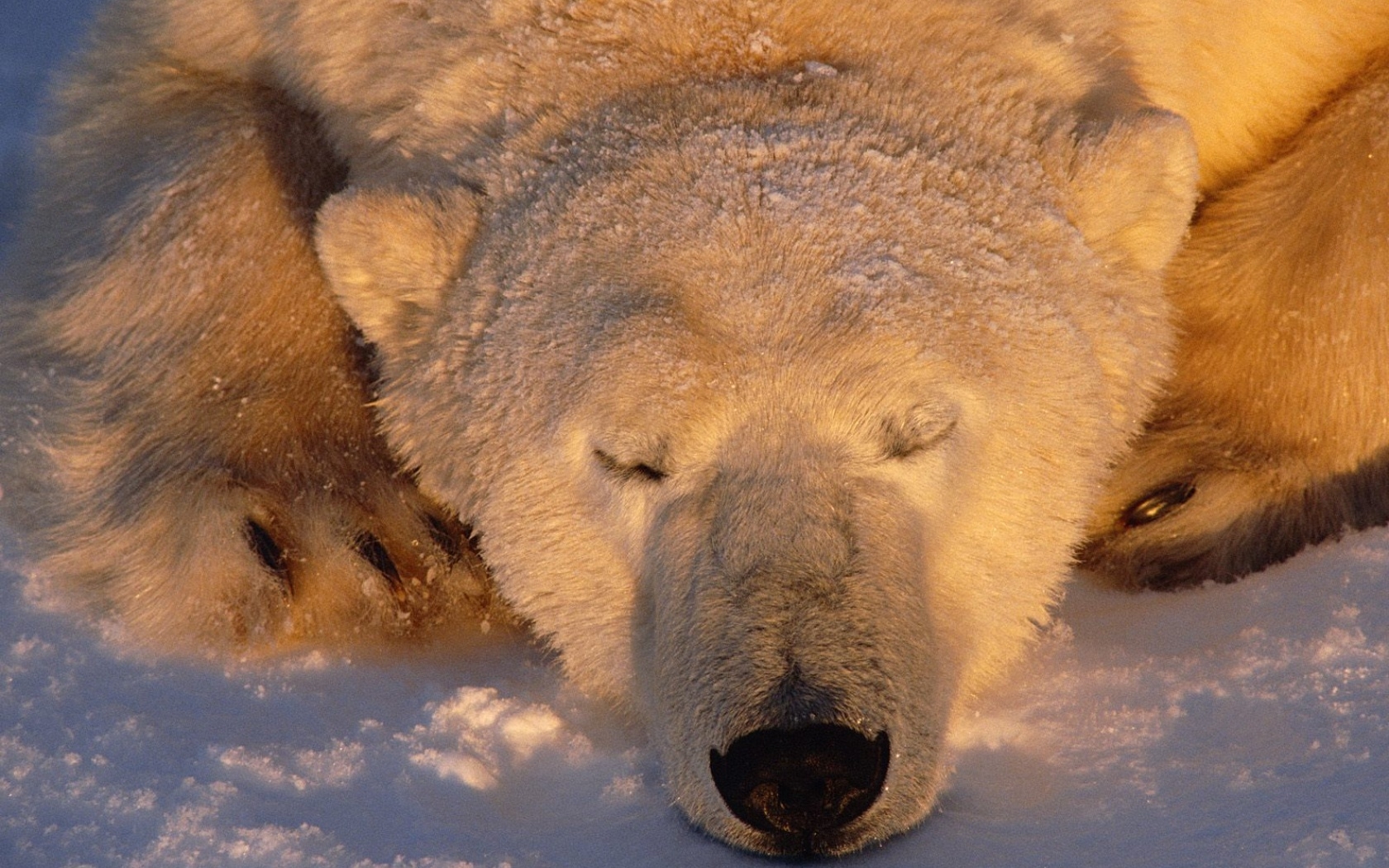 Скачать обои для рабочего стола Белый медведь спит и фото