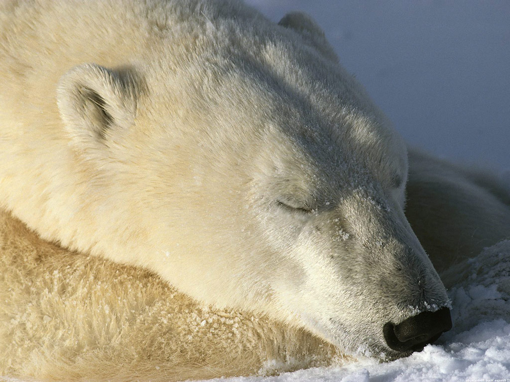 Скачать обои для рабочего стола Белый медведь спит и фото