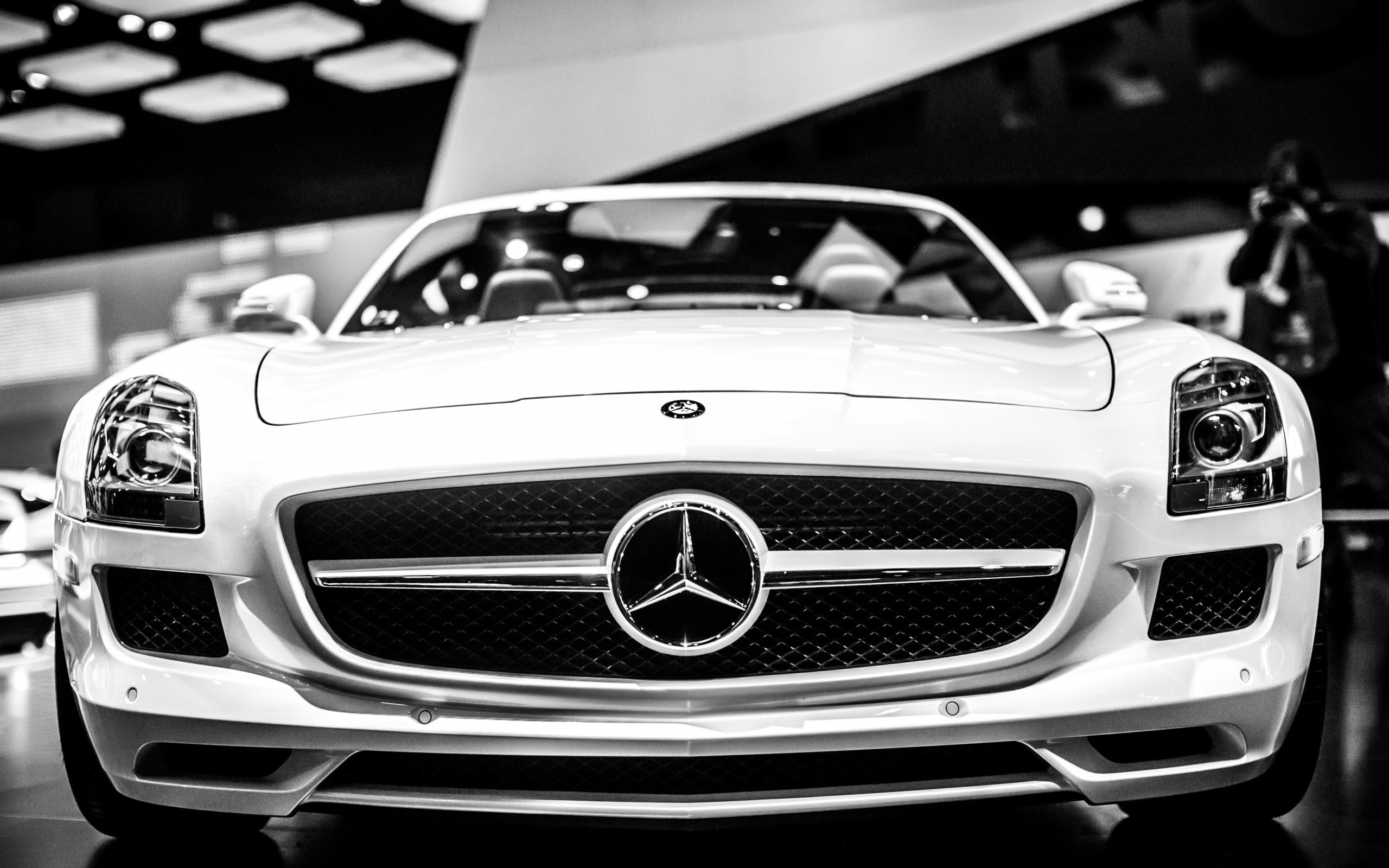 Скачать обои для рабочего стола Белый мерседес, вид спереди и фото