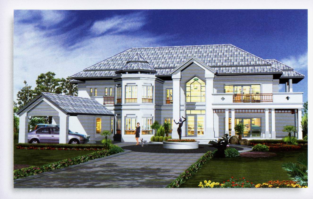 Обои Белый особняк с навесом для автомобиля