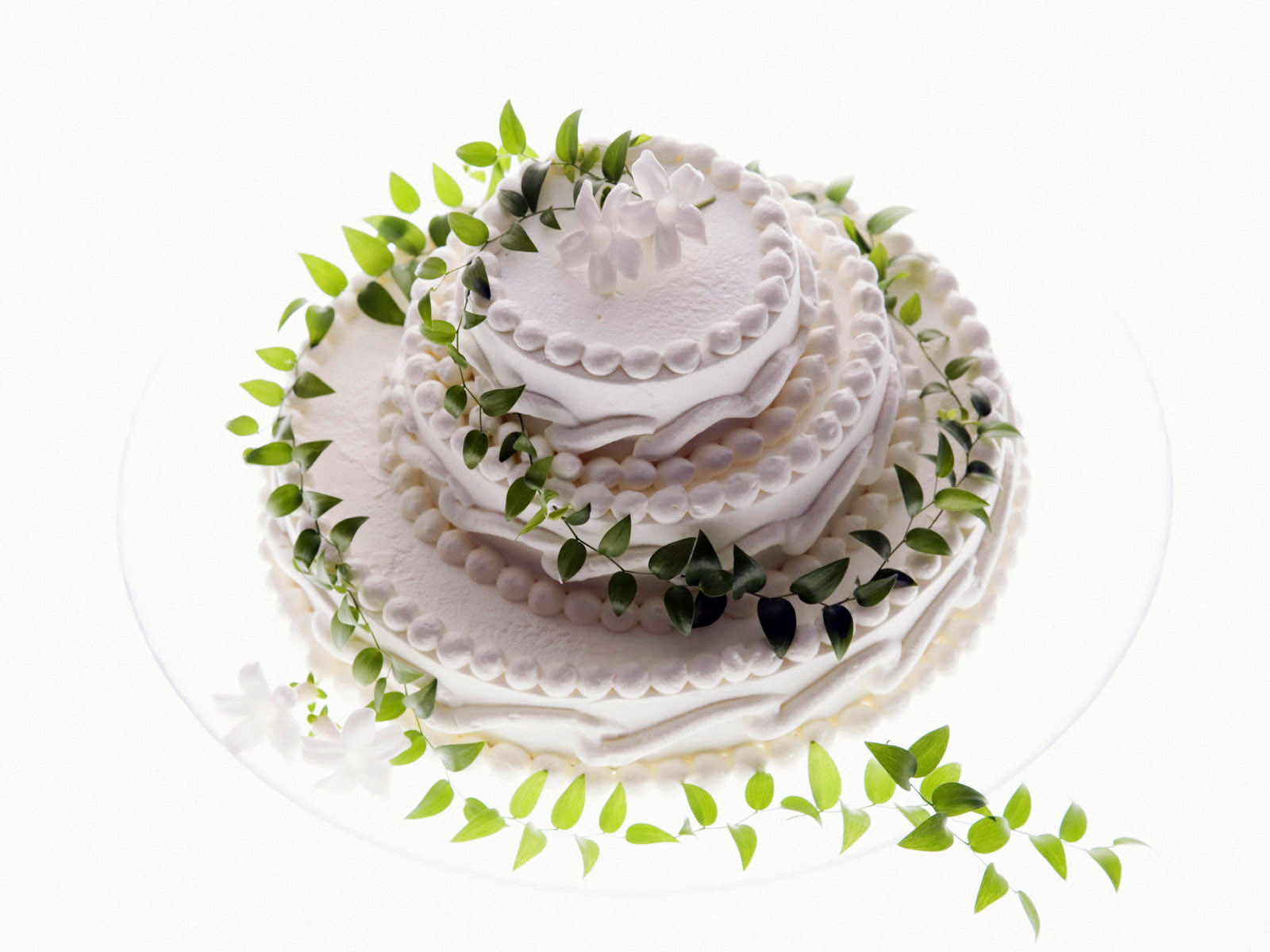 Скачать обои для рабочего стола Белый трехярусный торт и фото