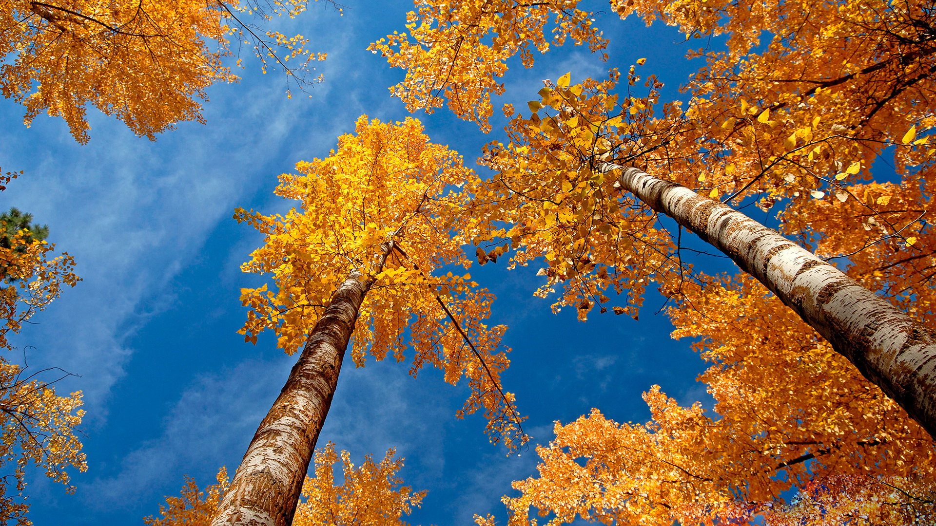 Скачать обои для рабочего стола Березовый лес осенью и фото