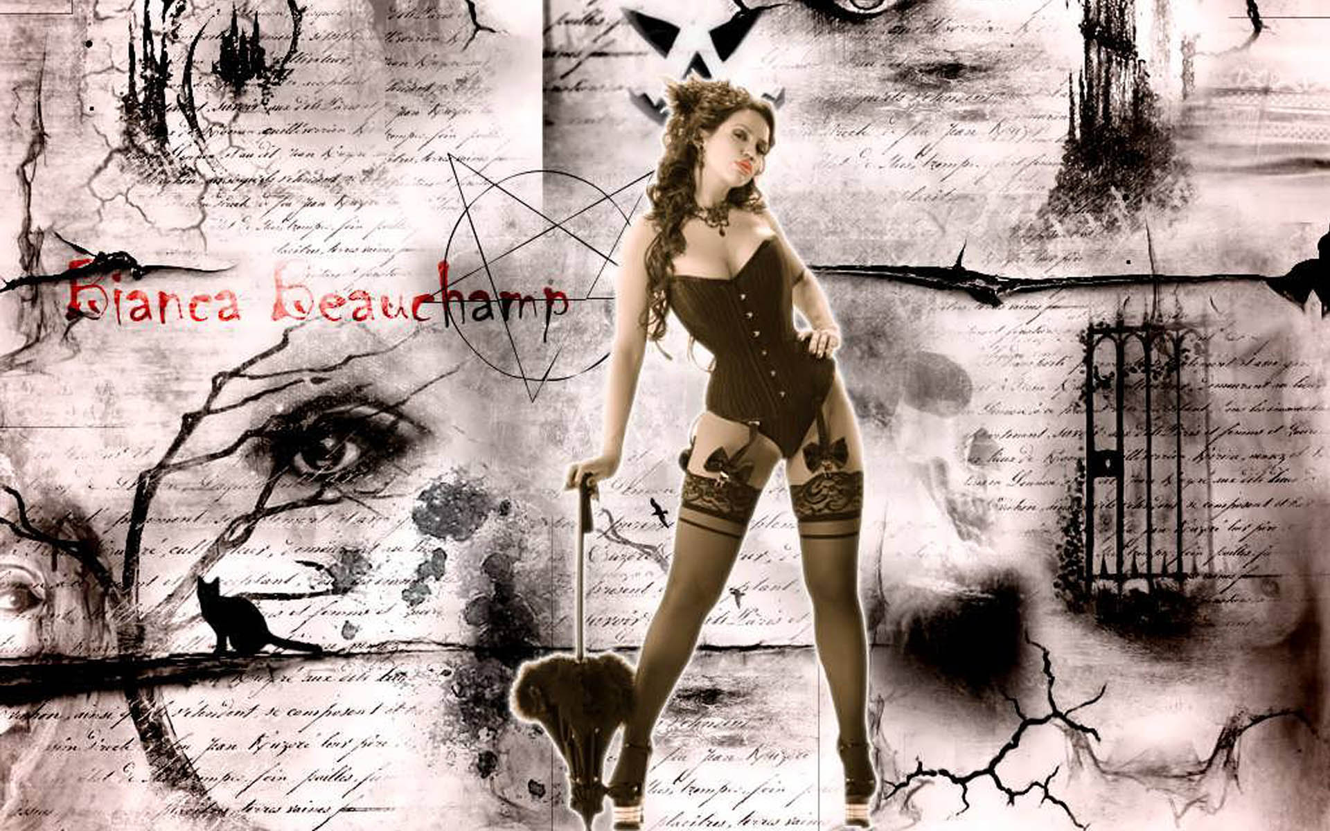 Скачать обои для рабочего стола Bianca Beauchamp с зонтиком и фото
