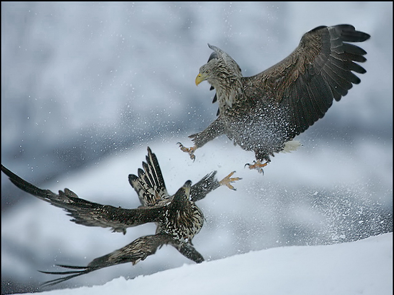 Похожие обои на Битва двух ястребов на снегу: