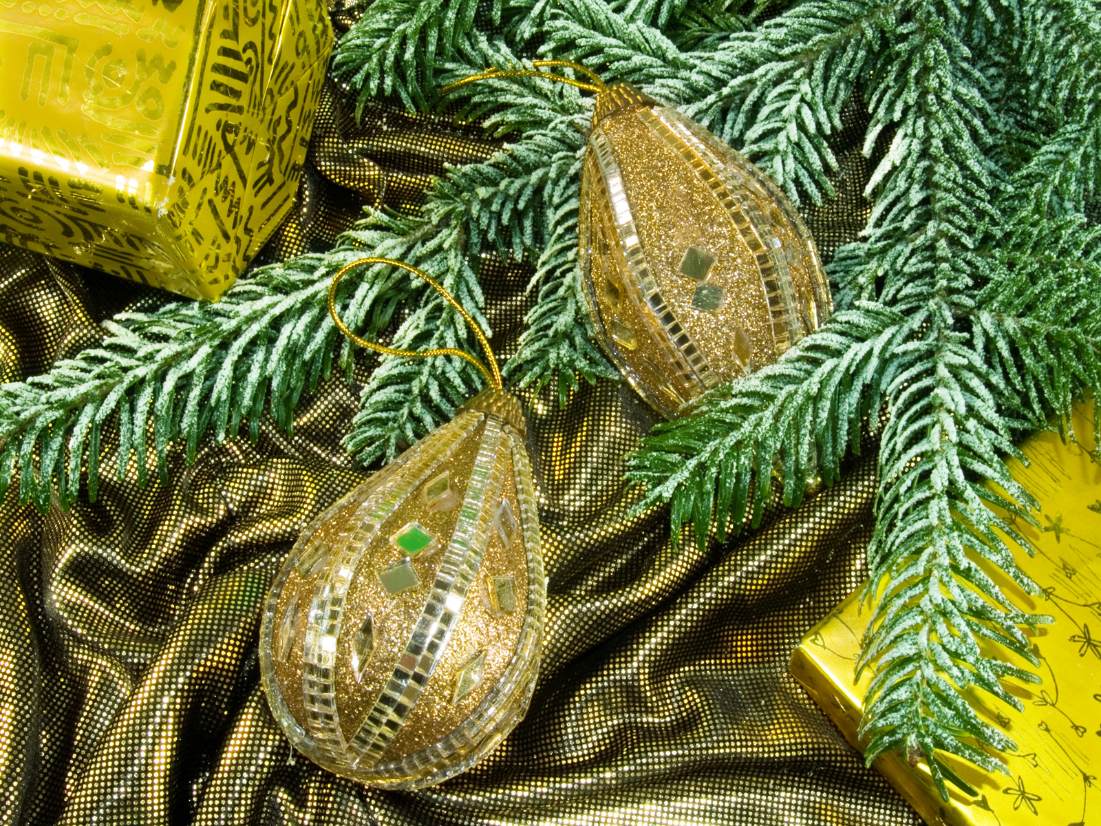 Скачать обои для рабочего стола Блестящие стеклянные игрушки и фото
