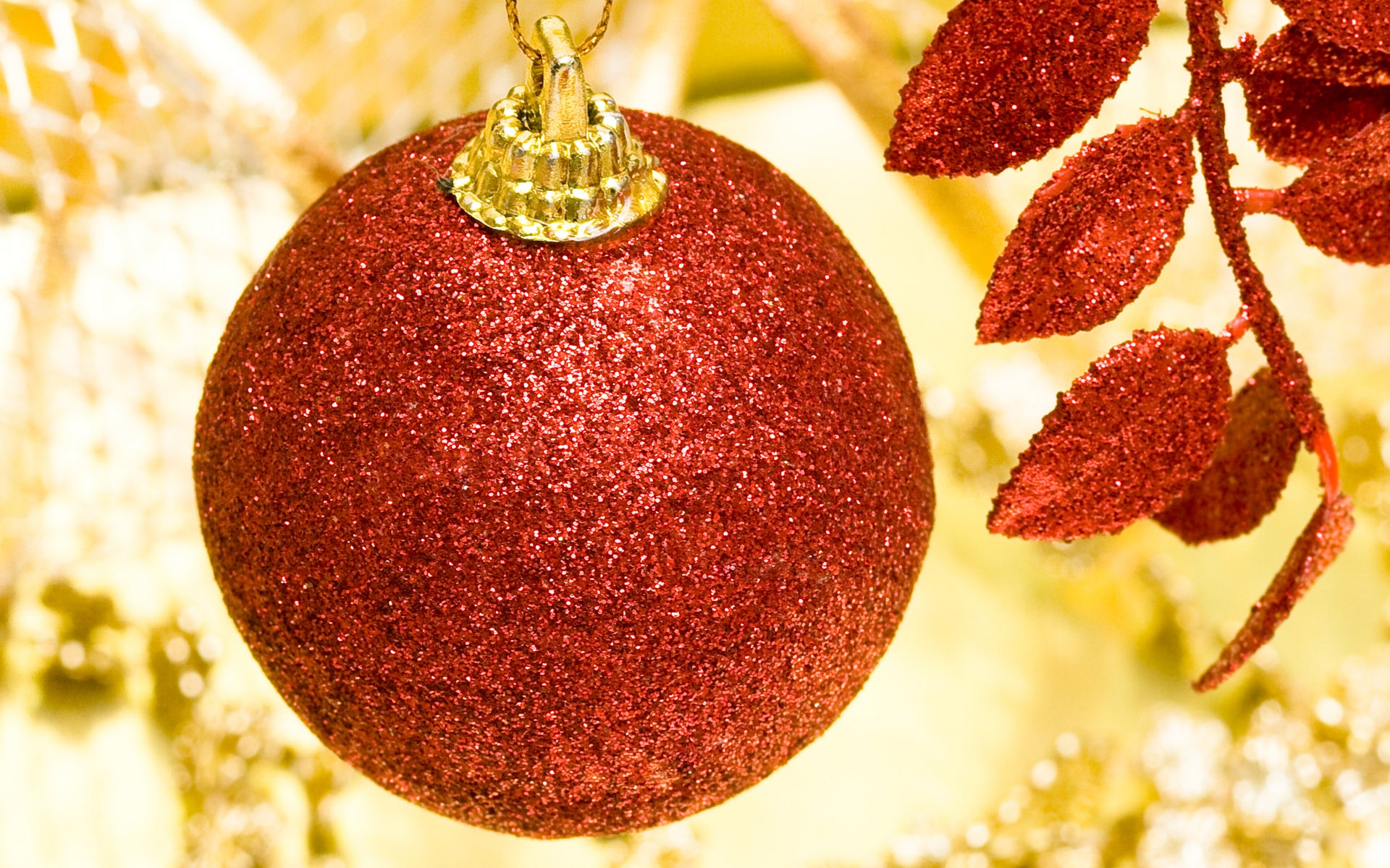 Скачать обои для рабочего стола Блестящий красный шар на ветви и фото