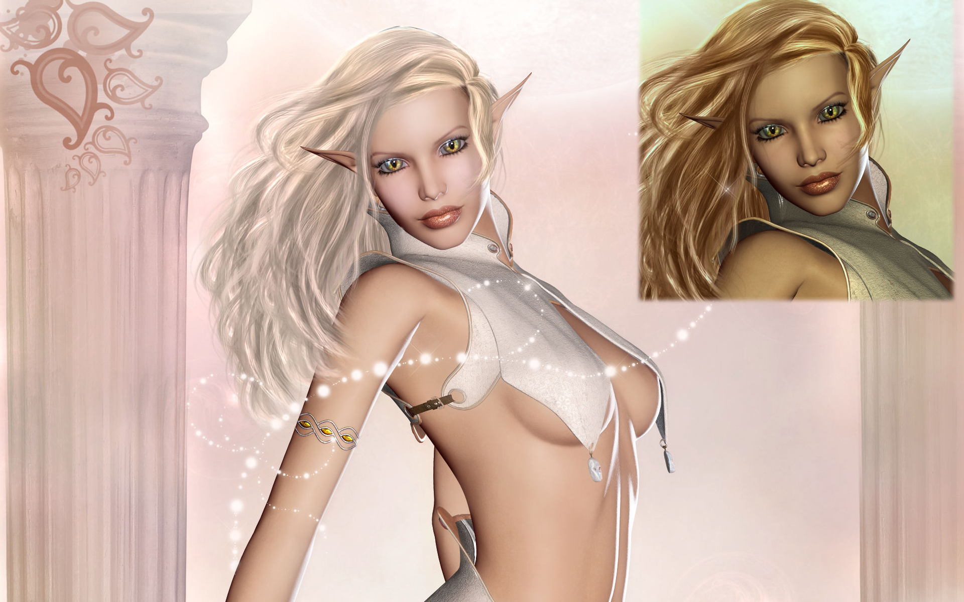 Скачать обои для рабочего стола Блондинка с большими ушками и фото