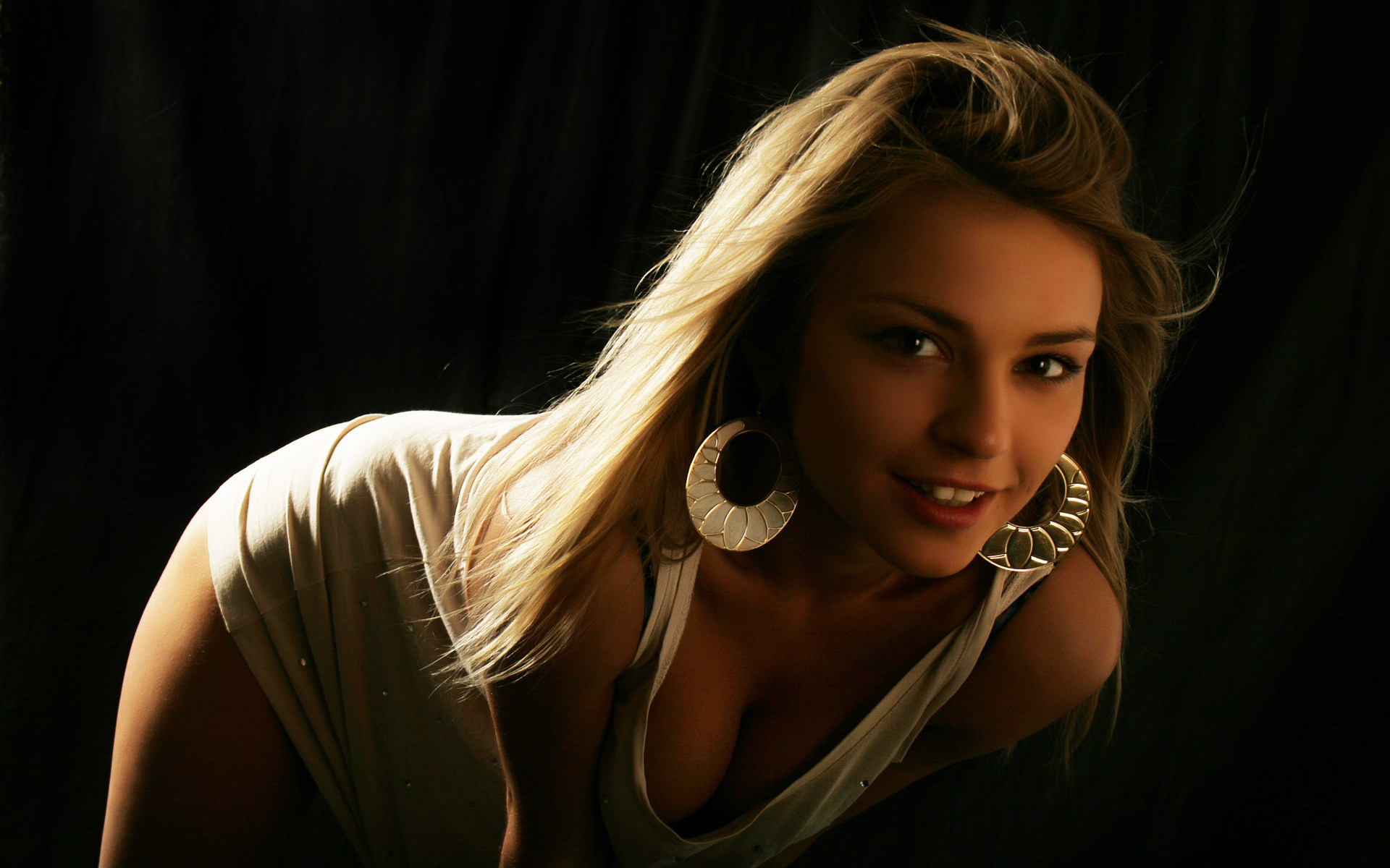 Скачать обои для рабочего стола Блондинка с огромными серьгами и фото