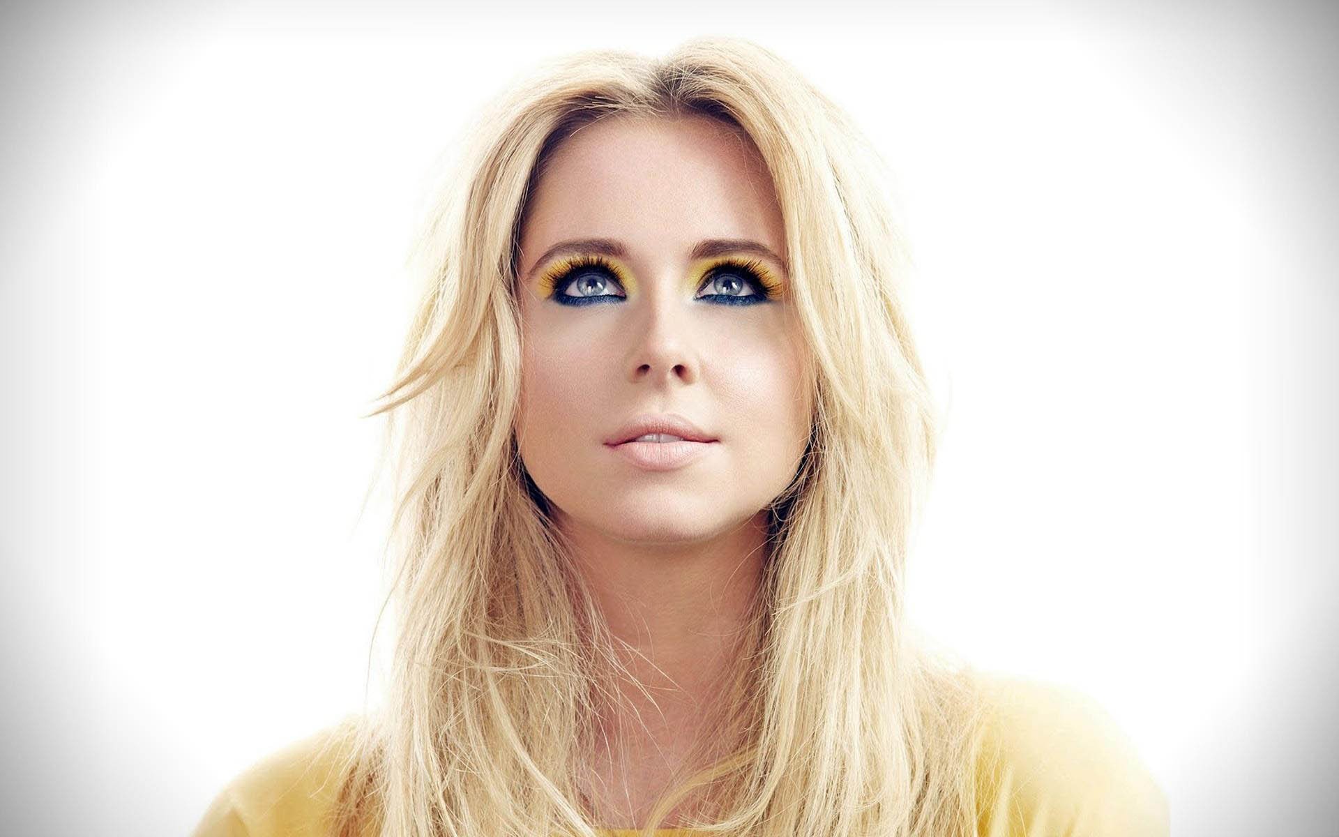 Скачать обои для рабочего стола Блондинка смотрящая ввeрх и фото