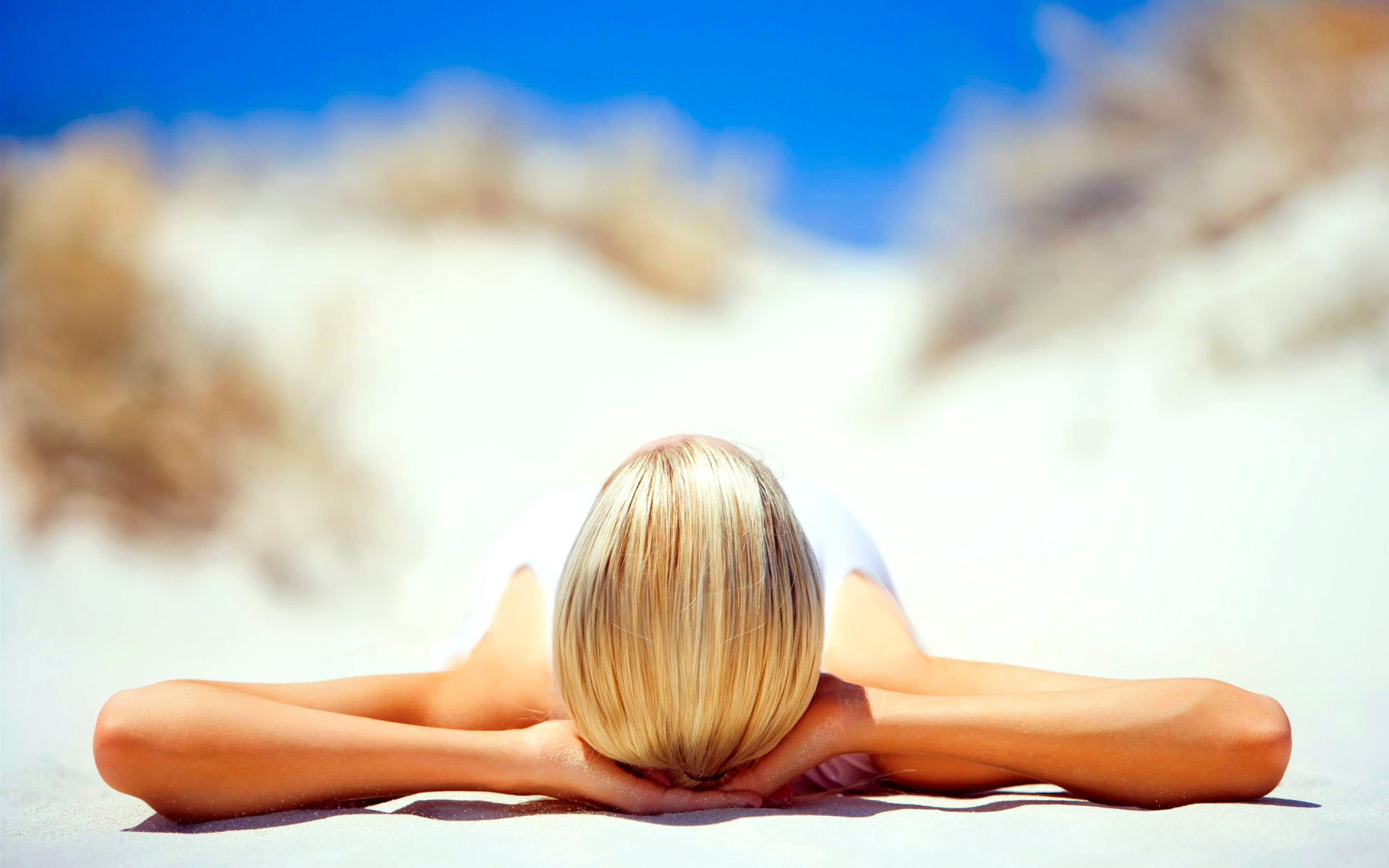 Скачать обои для рабочего стола Блондинка загорает на пляже и фото