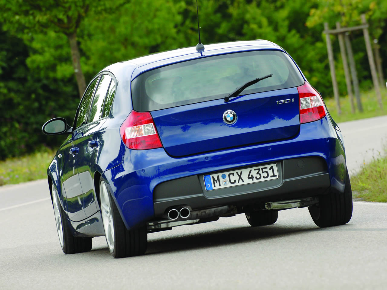 Скачать обои для рабочего стола BMW 130i синяя сзади и фото