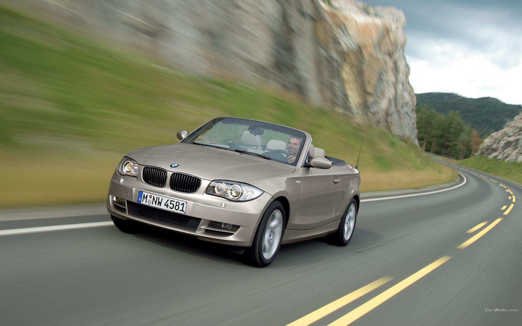 Скачать обои для рабочего стола BMW 1-й серии кабриолет на дороге и фото