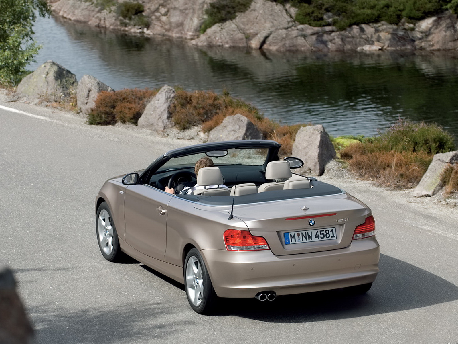 Скачать обои для рабочего стола BMW_1series cabrio вид на трассе и фото