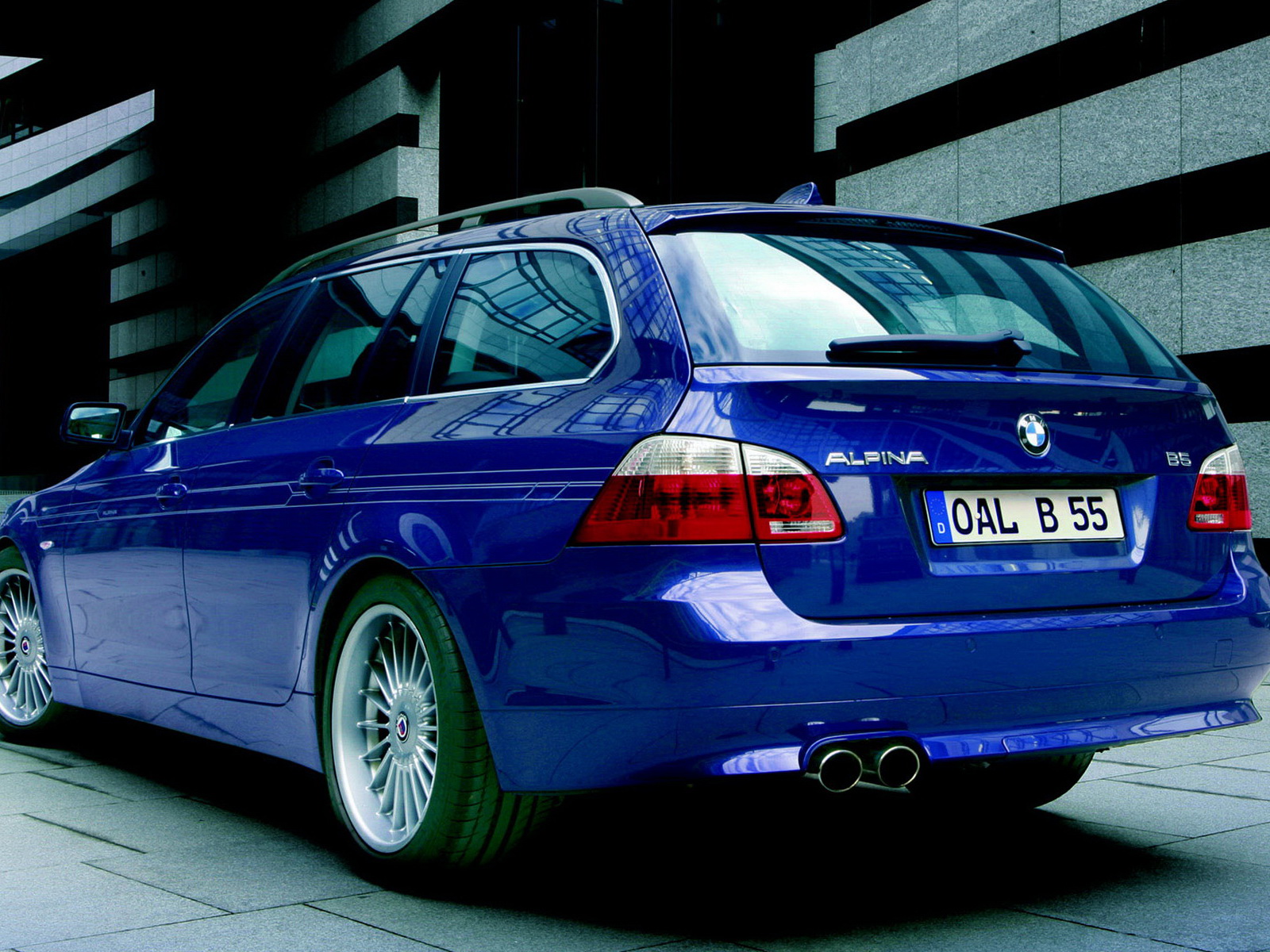 Скачать обои для рабочего стола BMW alpina b5 вид сзади с другого ракурса и фото