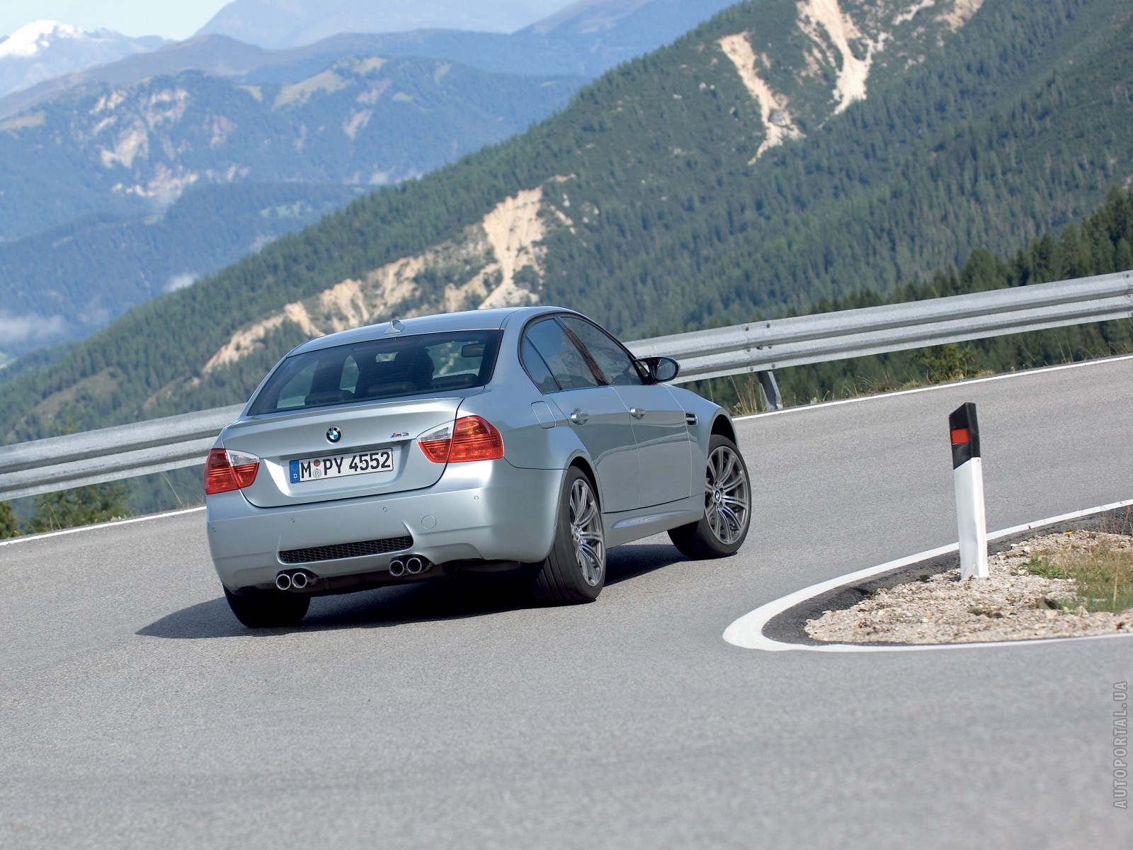 Обои BMW M3 сзади на крутом повороте