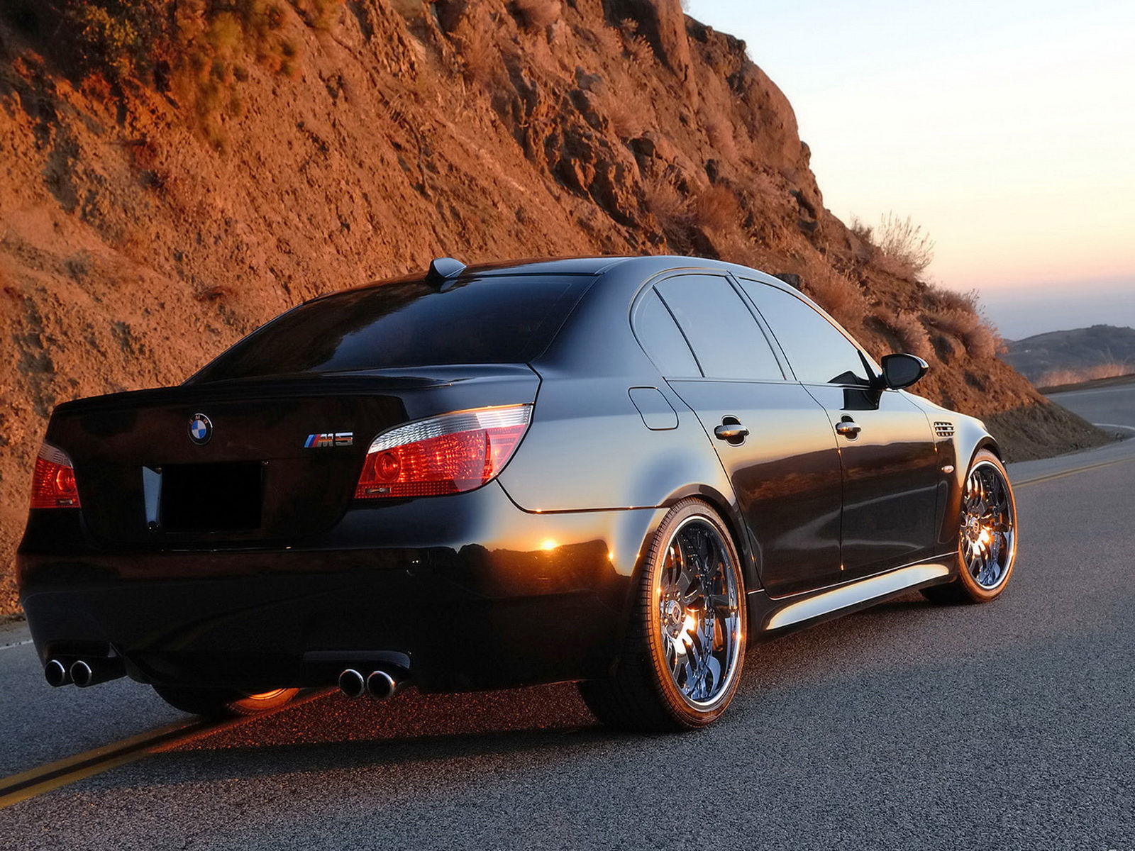 Скачать обои для рабочего стола BMW M5 turbo вид на фоне гор и холмов и фото