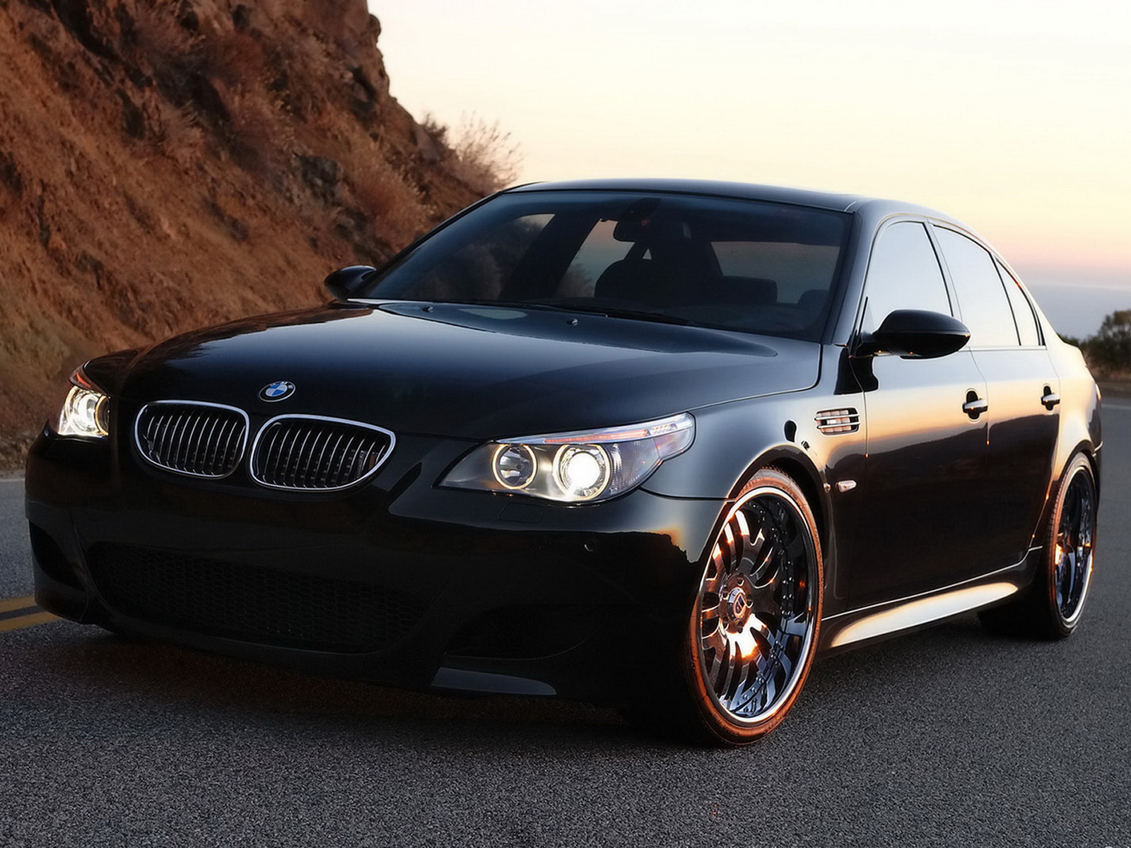 Скачать обои для рабочего стола BMW M5 turbo вид в пути и фото