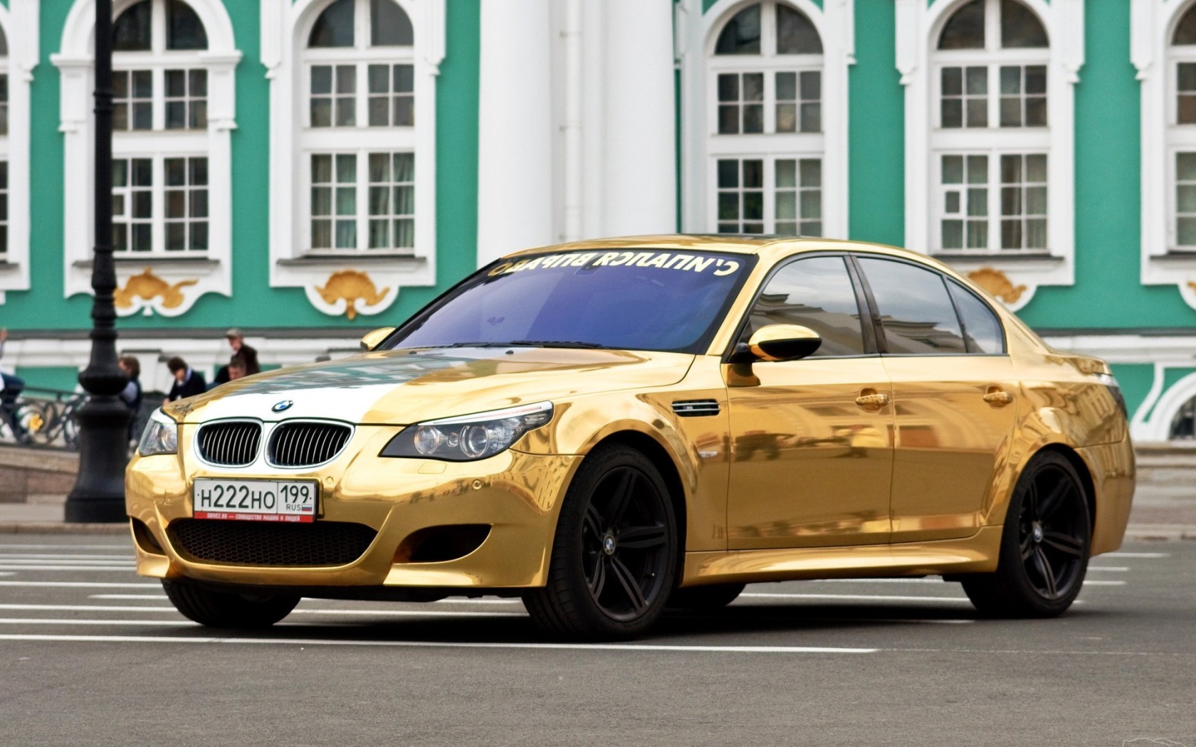 Скачать обои для рабочего стола BMW M5 золотая и фото