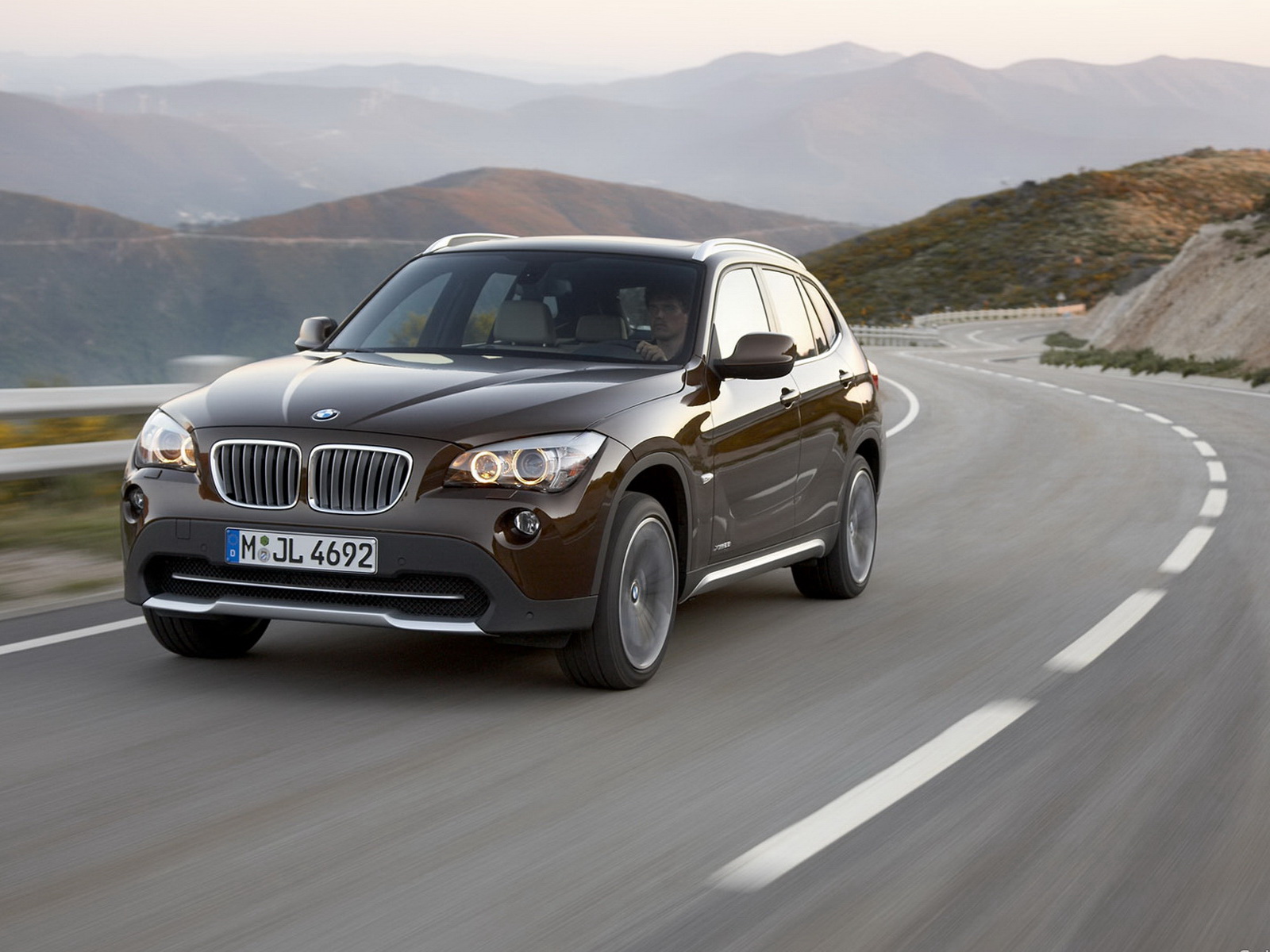 Скачать обои для рабочего стола BMW X1 вид на трассе и фото