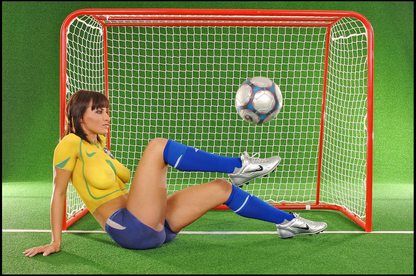 Скачать обои для рабочего стола Боди-арт на теле мяч на ноге и фото