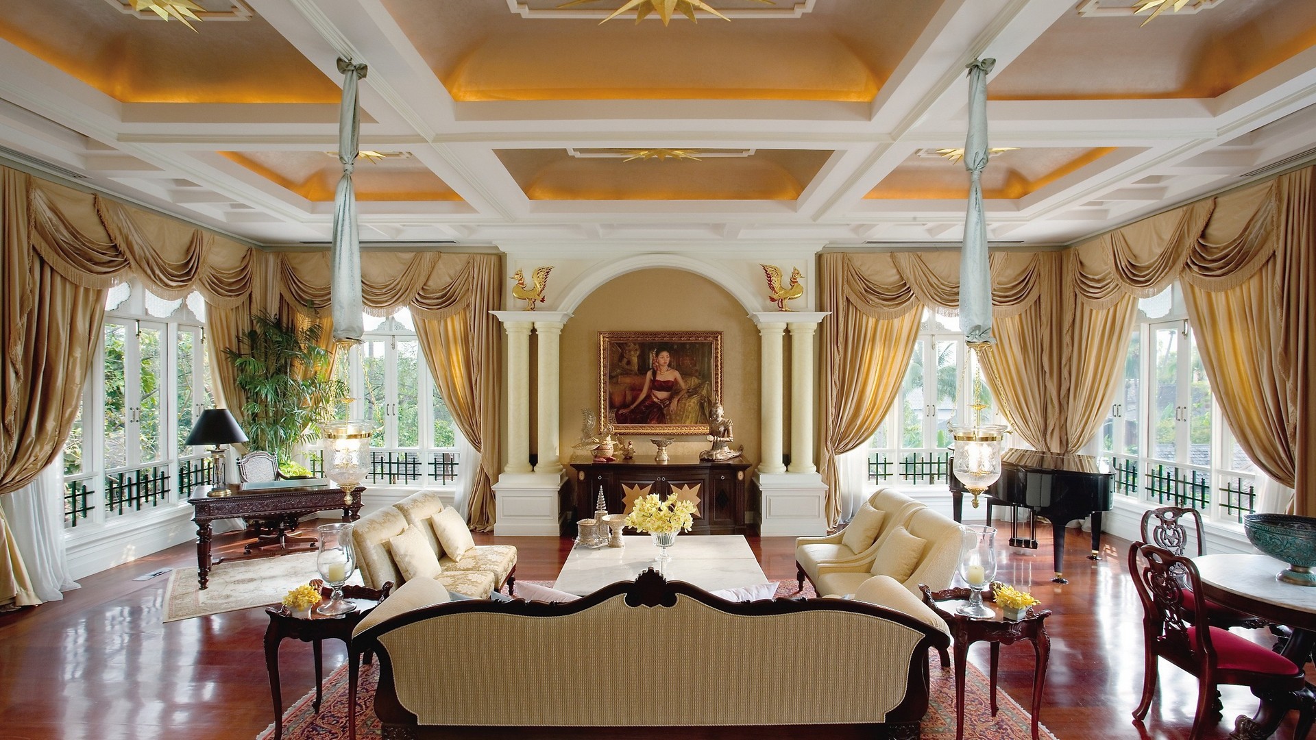 Скачать обои для рабочего стола Большая зала гoстиной и фото