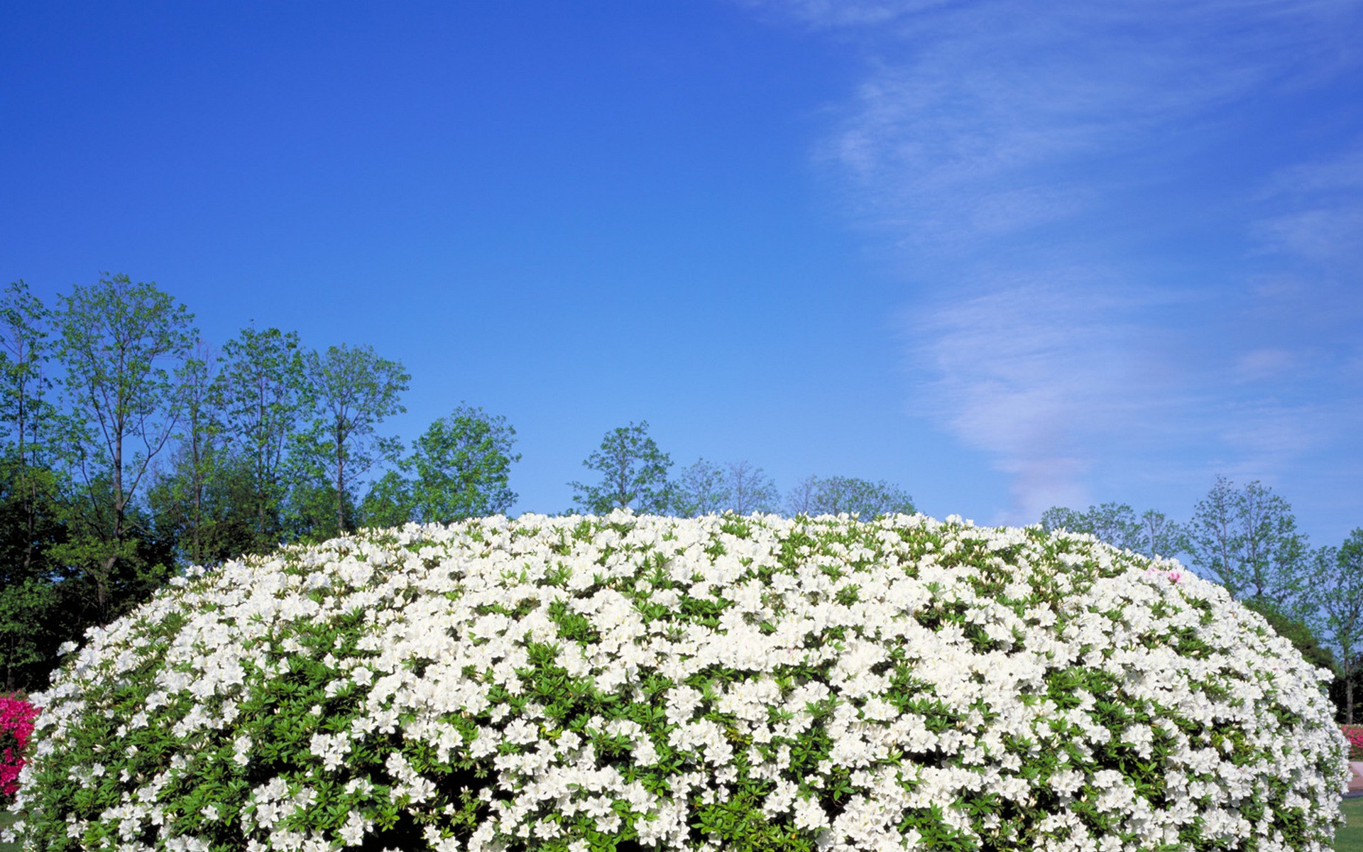 Похожие обои на Большой декоративный куст с белыми цветами: