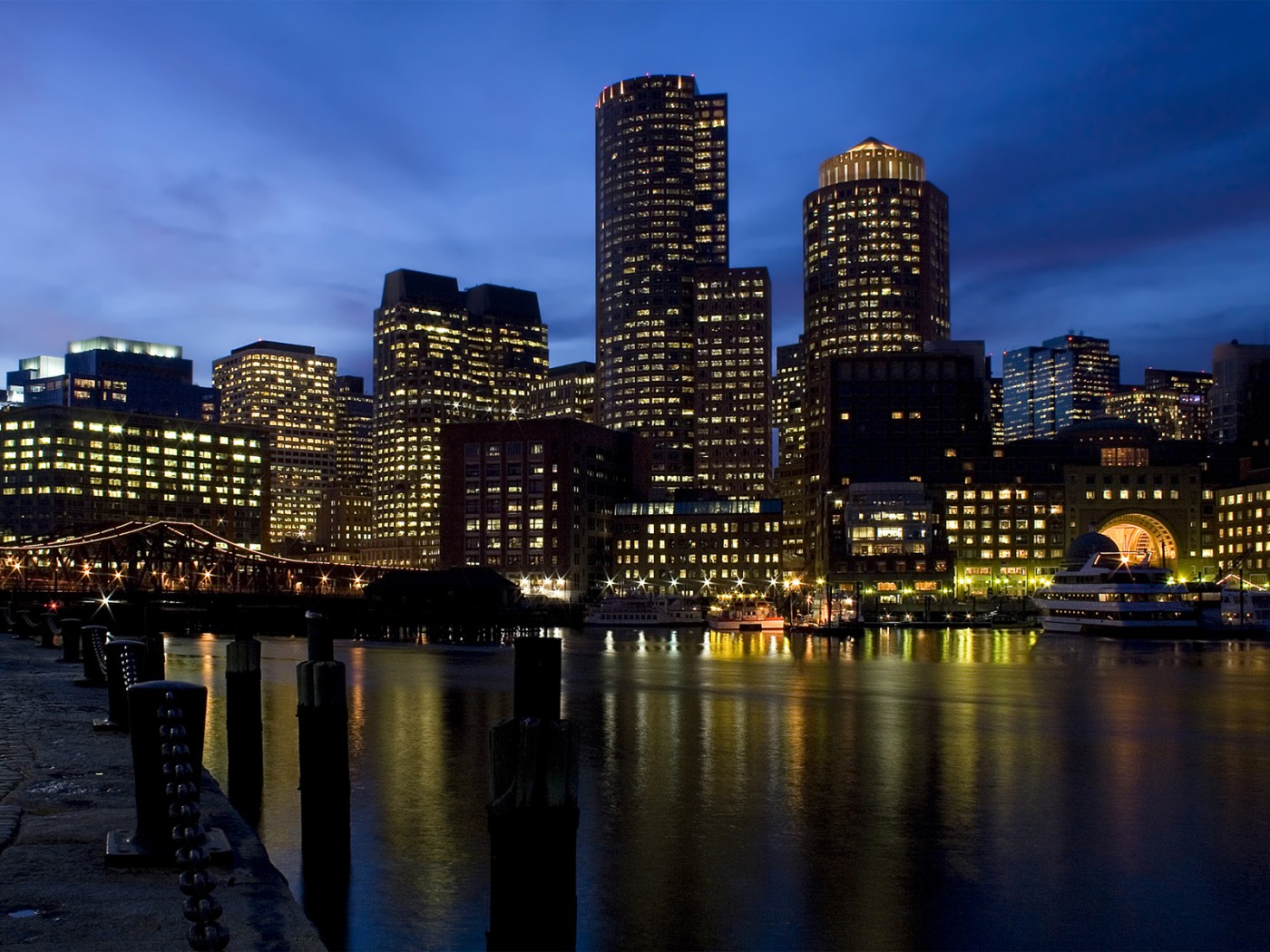 Скачать обои для рабочего стола Бостон. Ночь и фото
