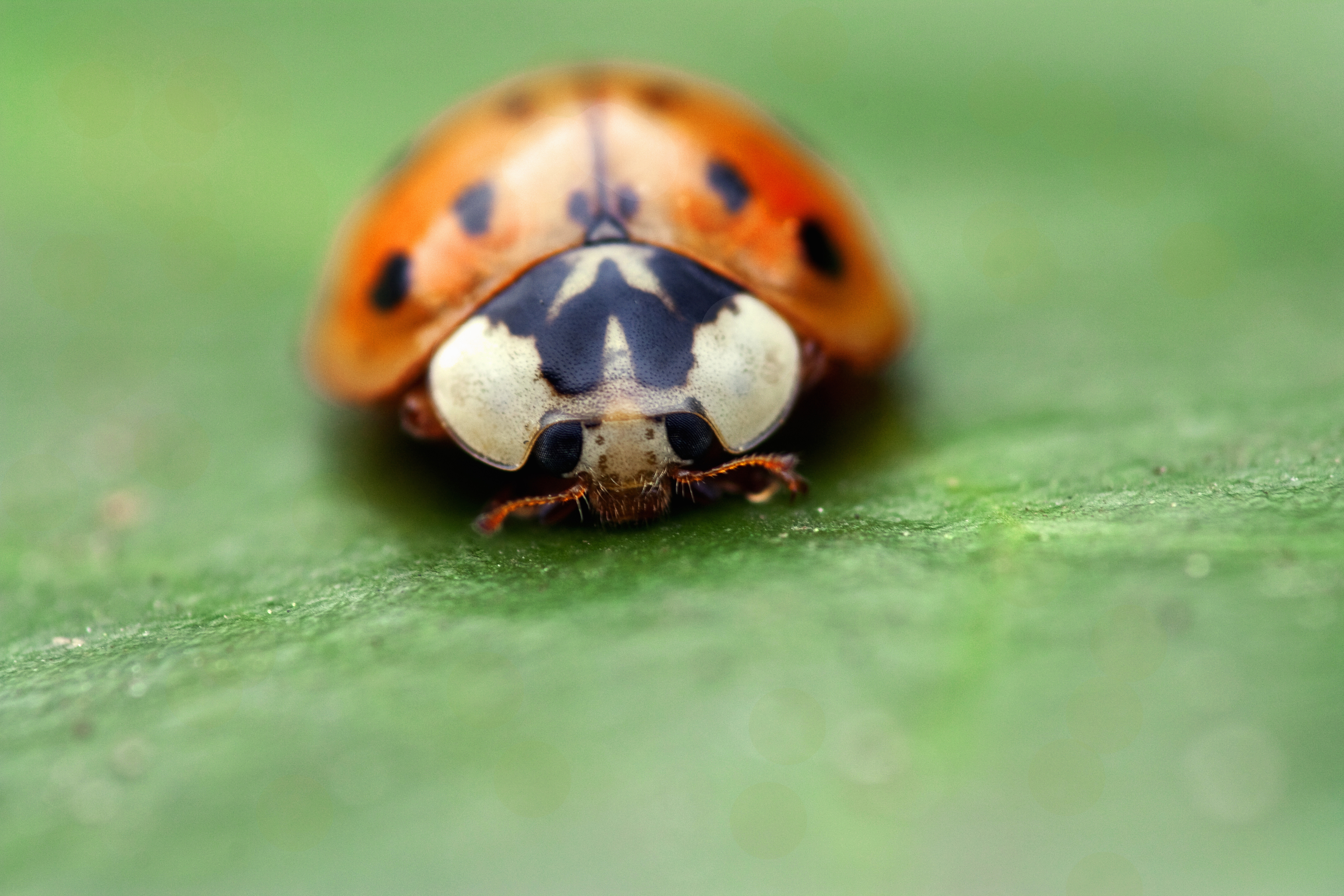 Скачать обои для рабочего стола Божья коровка на листе и фото