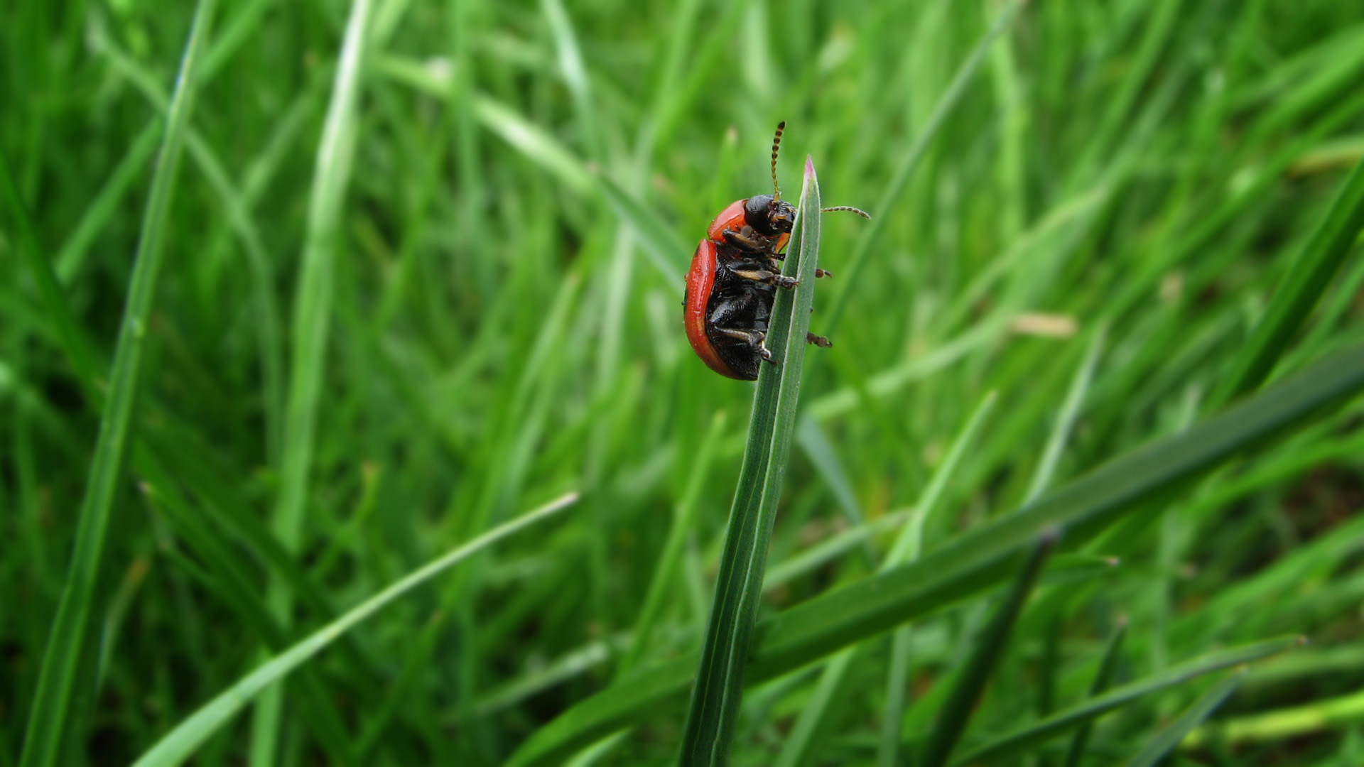 Скачать обои для рабочего стола Божья коровка на травинке и фото