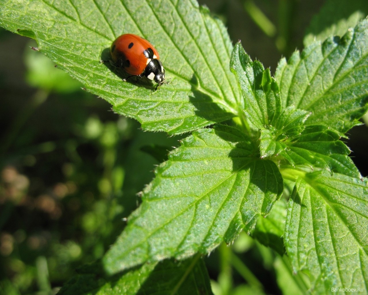 Похожие обои на Божья коровка ползет по листку: