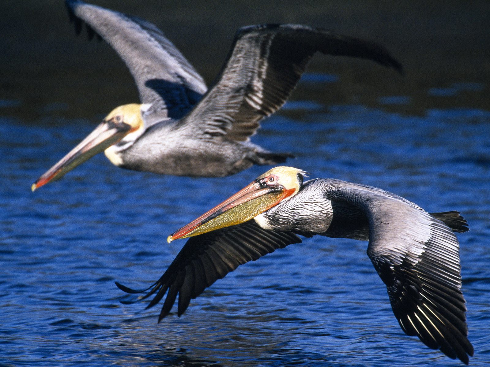 Скачать обои для рабочего стола Brown Pelicans in Flight и фото