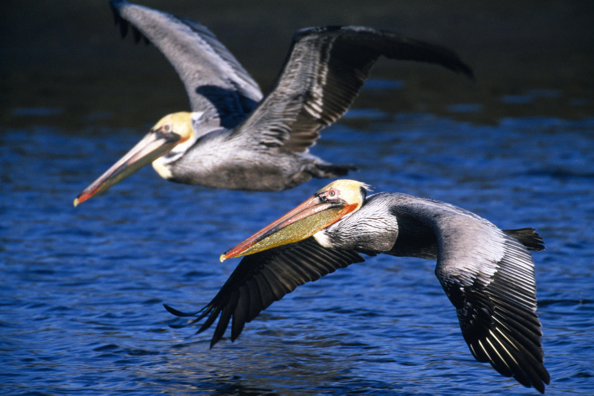 Скачать обои для рабочего стола Brown Pelicans in Flight и фото