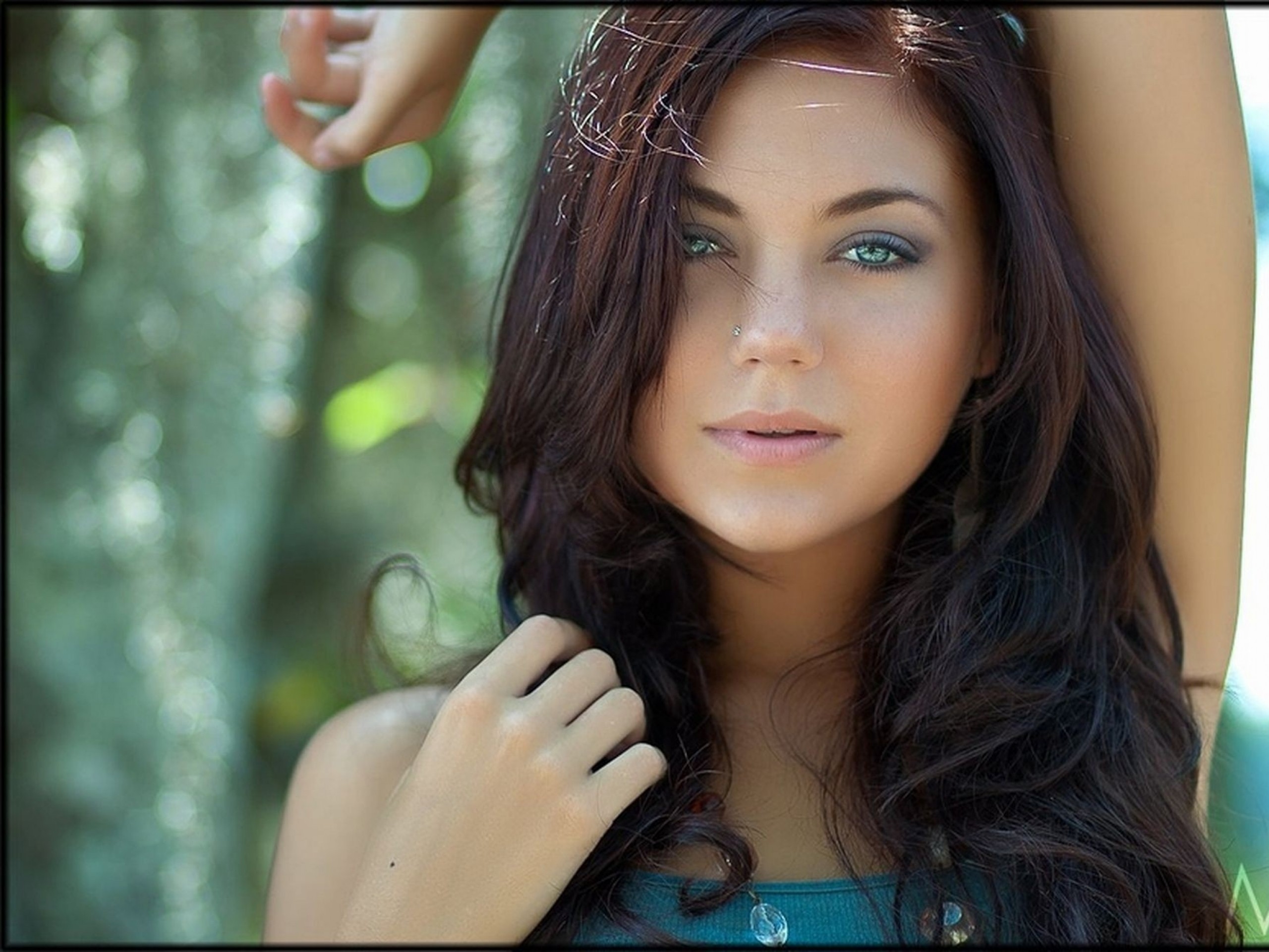 Скачать обои для рабочего стола Брюнетка со светлыми глазами и фото