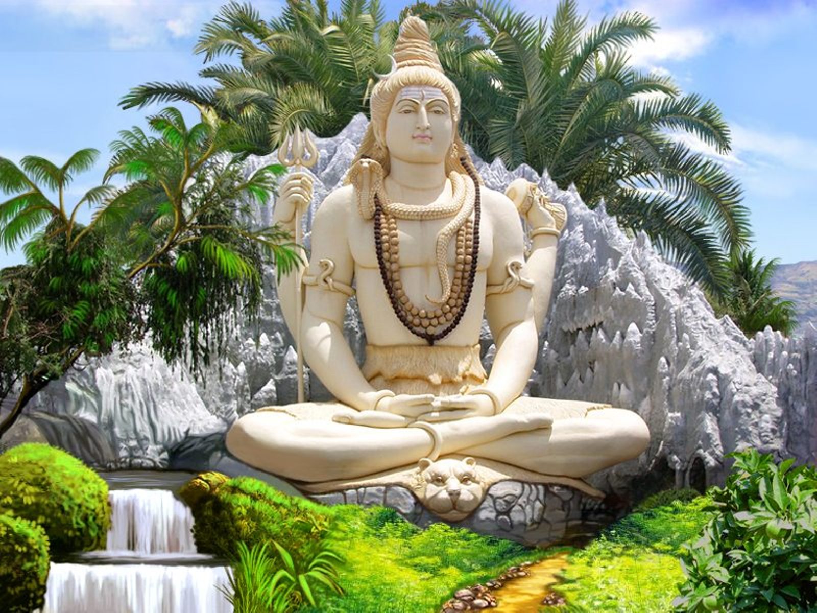 Скачать обои для рабочего стола Будда, пальмы и водопад и фото